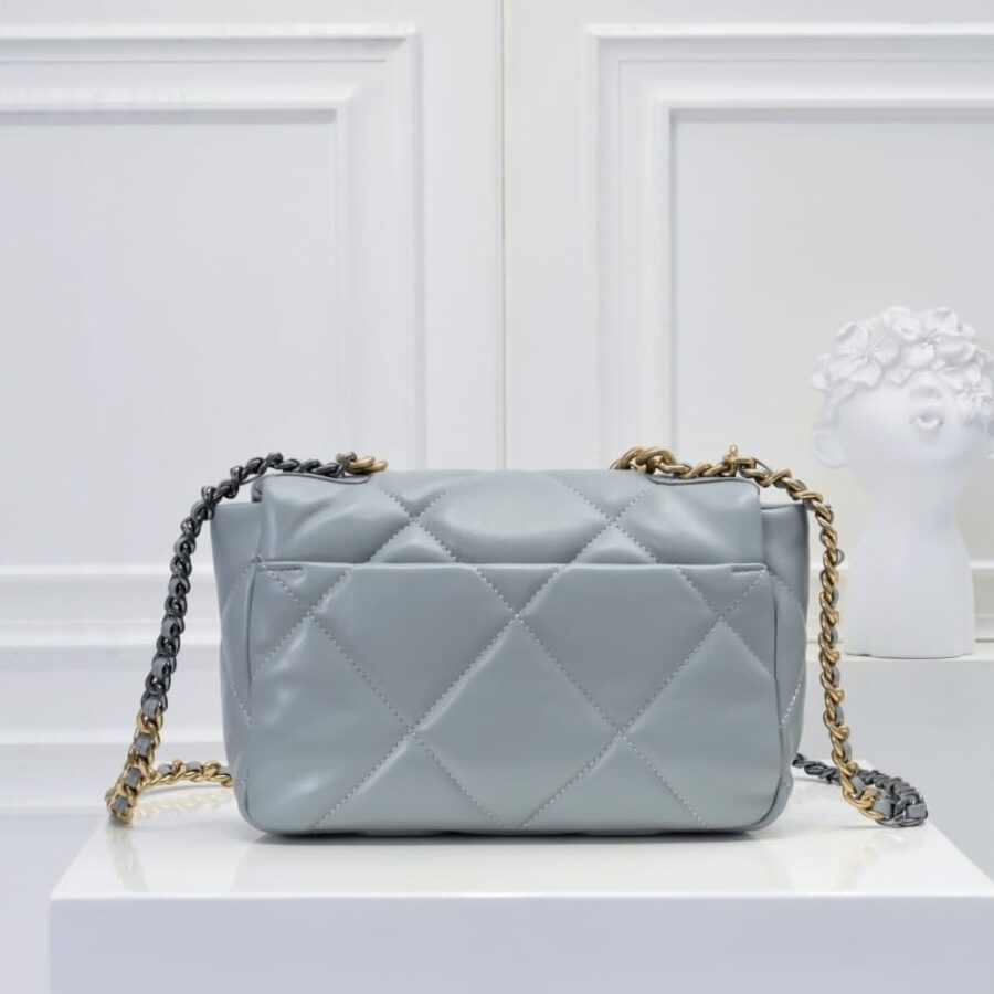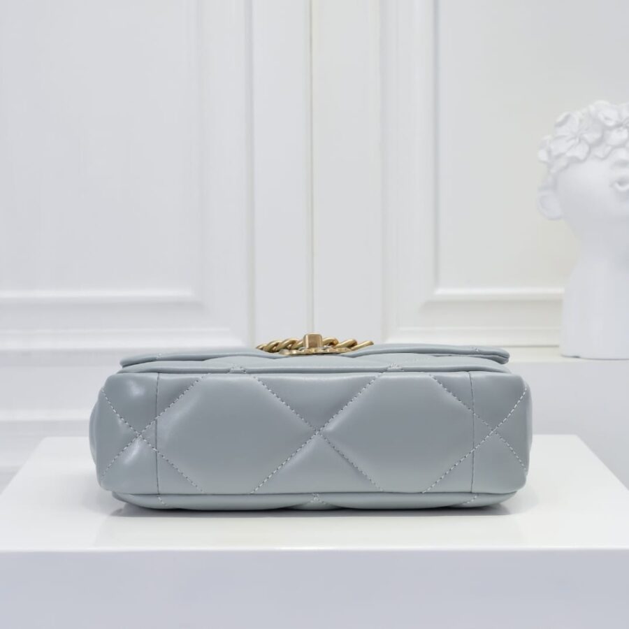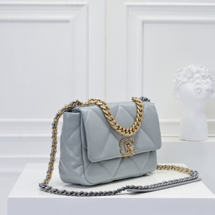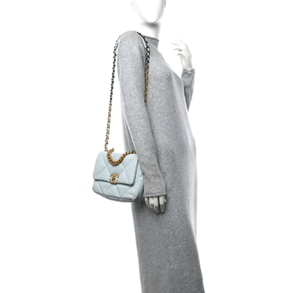 Chanel 19 Flap Bag / Gold and Silver hardware / Light Blue / 6.3 x 10.2 x 3.5 inches / Fit essential things / Daily bag / For Women