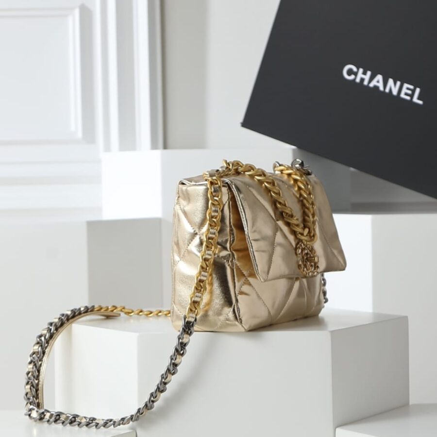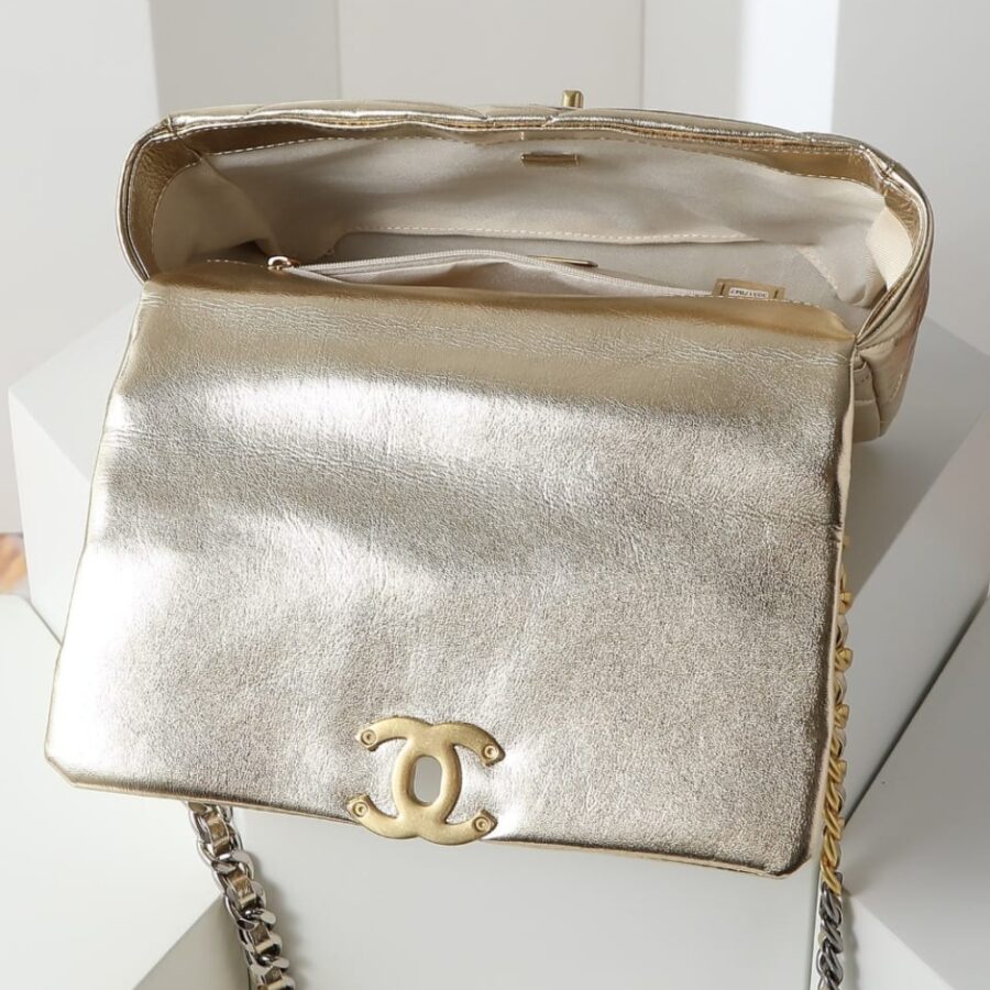 Replica 1:1 – Chanel 19 Metallic Leather Shoulder Bag Gold 26cm AS1160 B05457 NC293