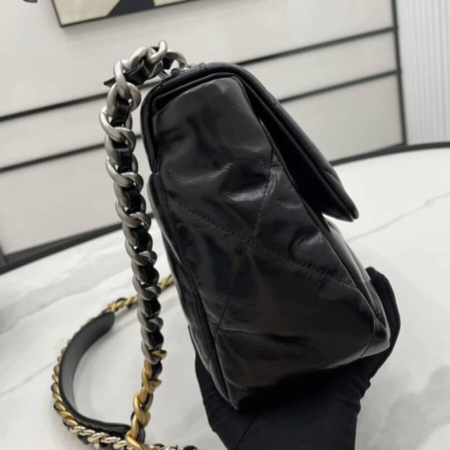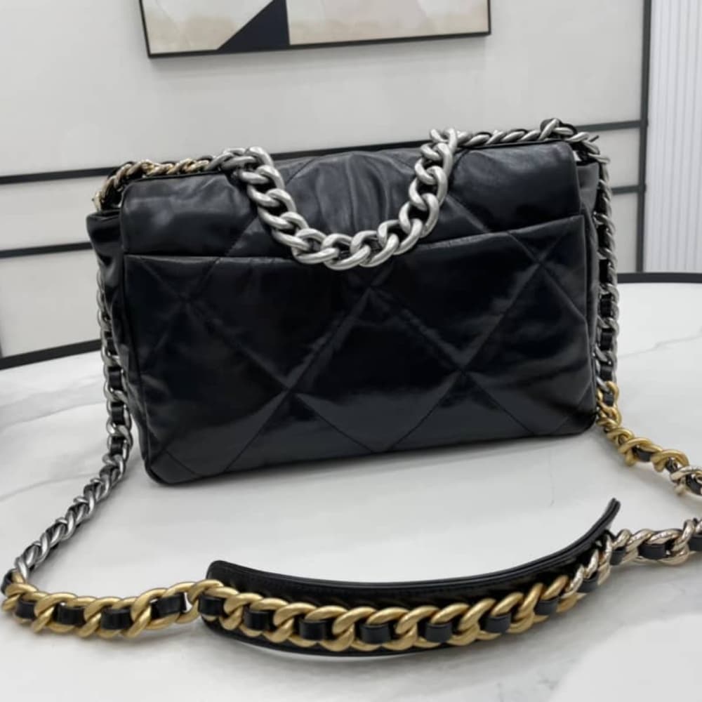 CHANEL 19 SERIES CLASSIC DOUBLE C LOGO SILVER TURN BUCKLE BLACK 31CM