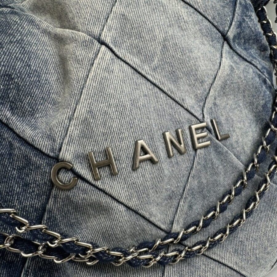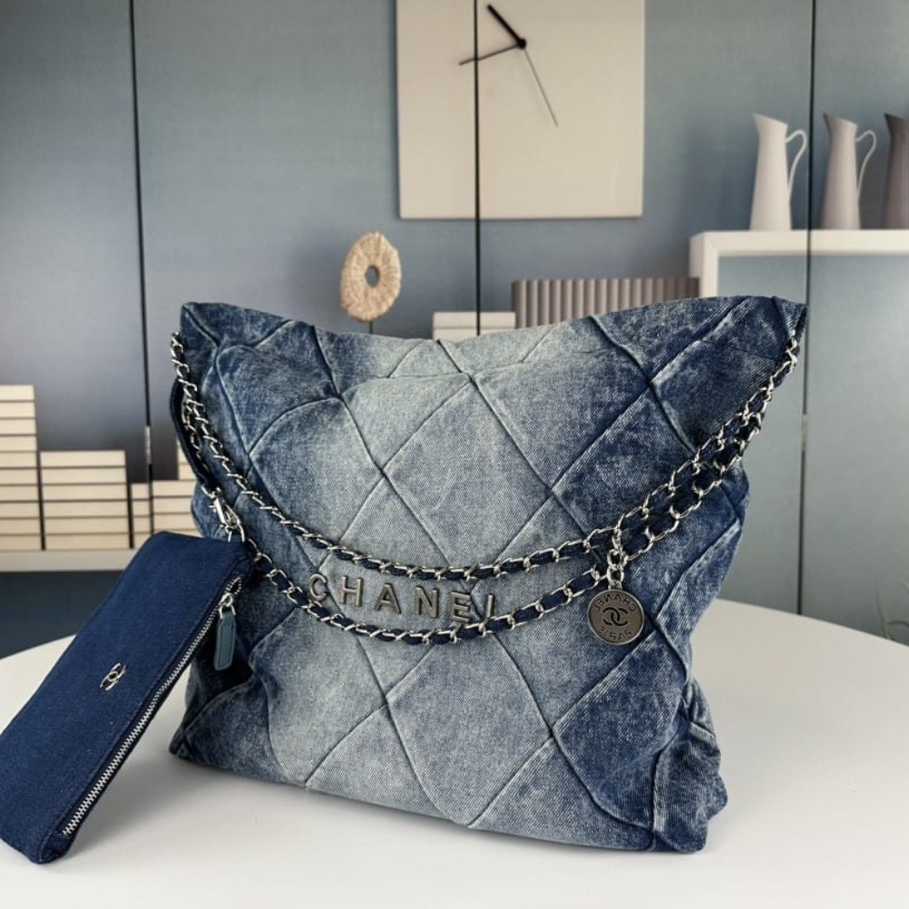 The Chanel 22 Handbag in washed denim redefines casual elegance with its signature quilted lines, silver chain detail, and effortless drawstring silhouette. Iconic yet refreshingly modern, it exudes a confident aura of prestige, making it the ultimate statement of luxury for those who embrace timeless style with contemporary flair.