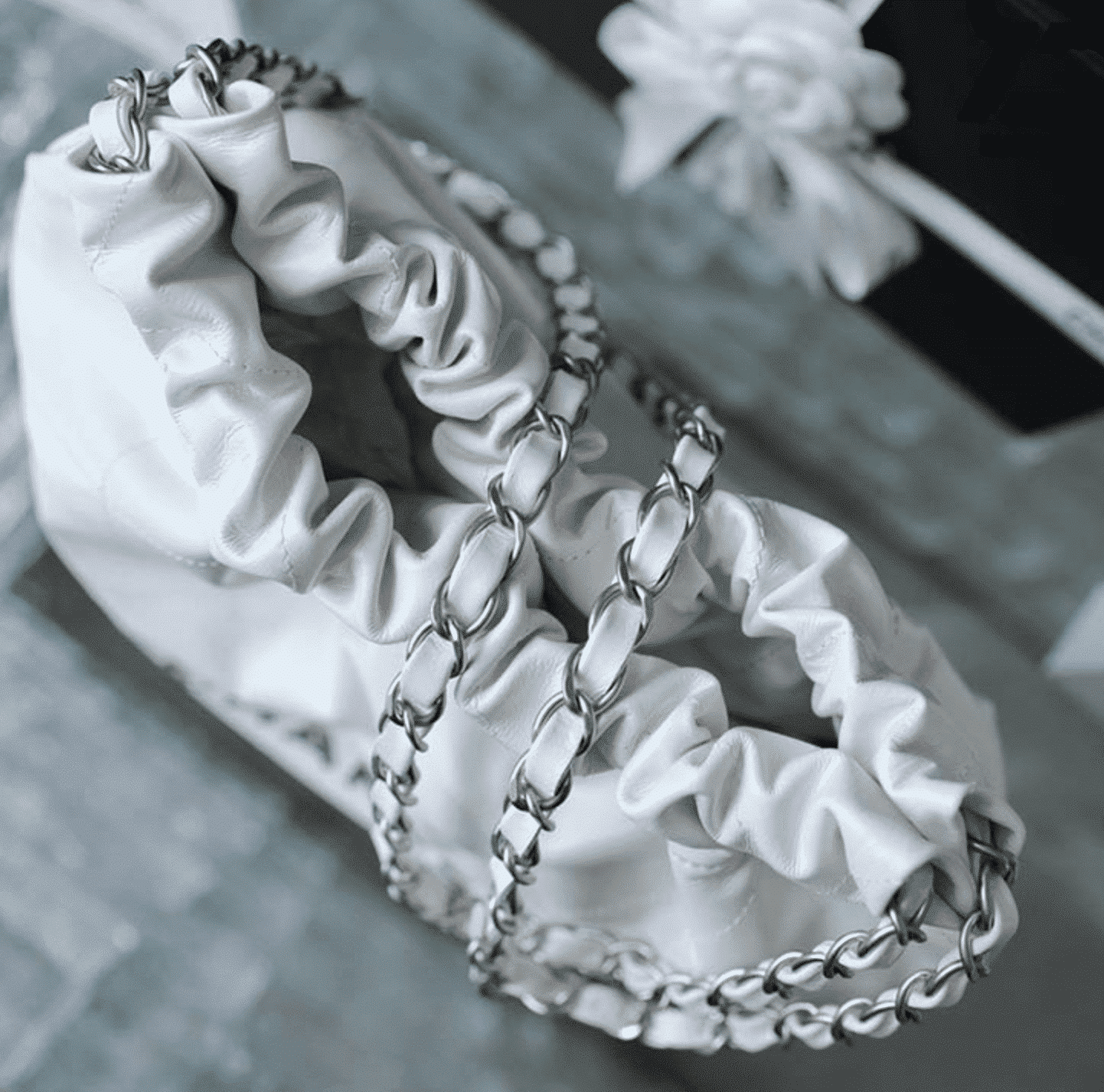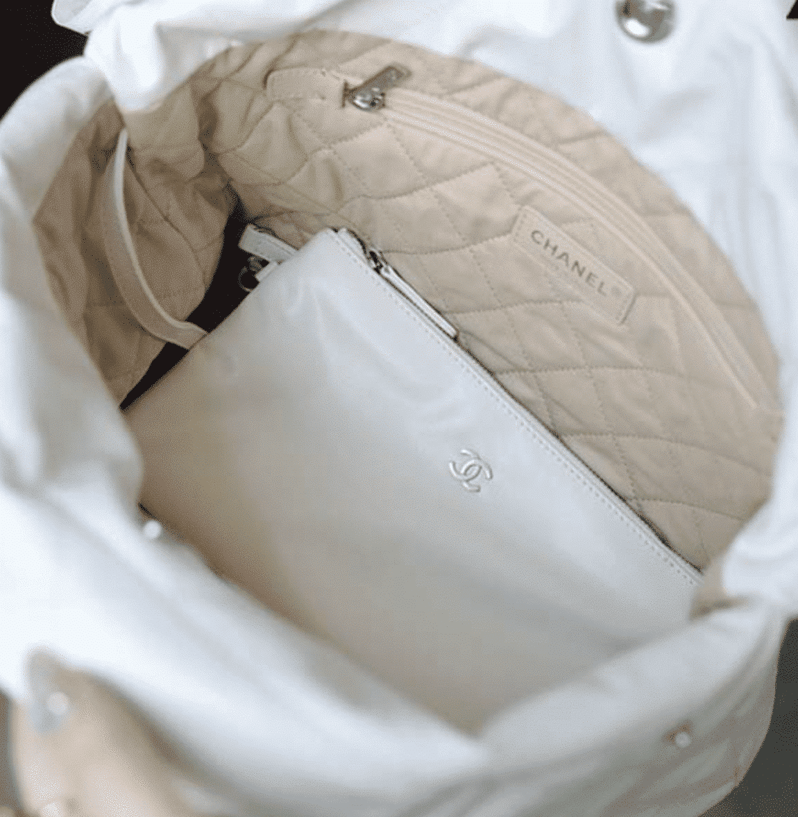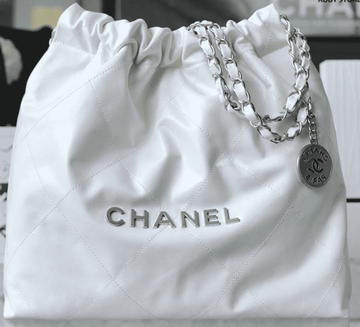 CHANEL 22 HANDBAG WHITE SILVER 42CM AS3261