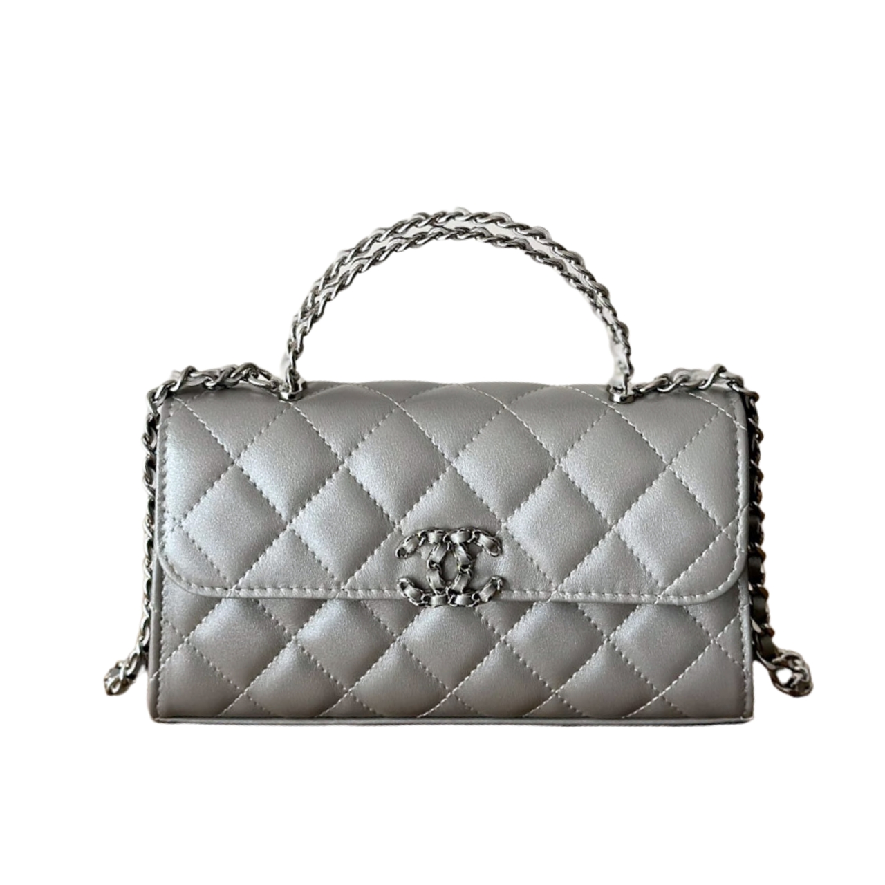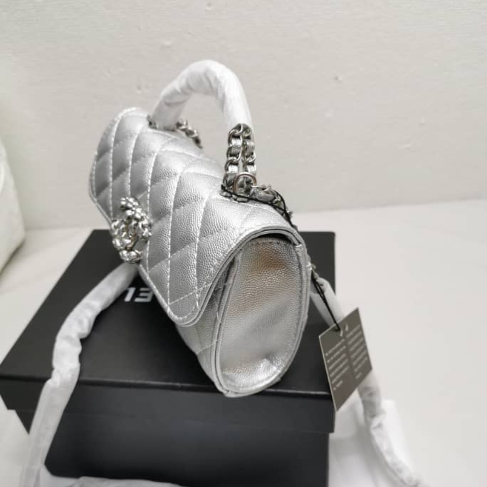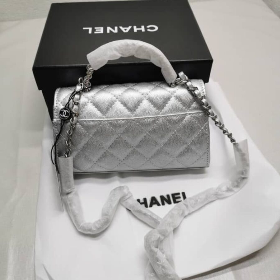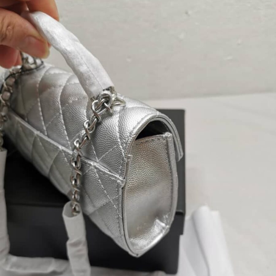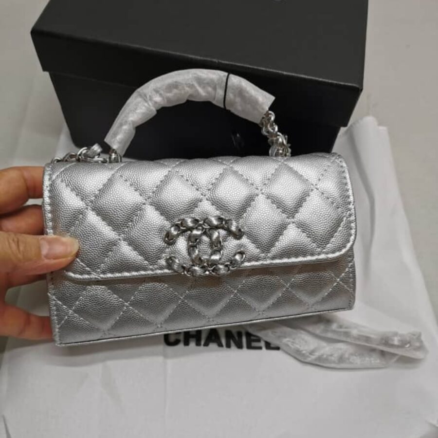Chanel 23P Clutch With Chain Bag With Top Handle Silver / 18cm / 7 inches