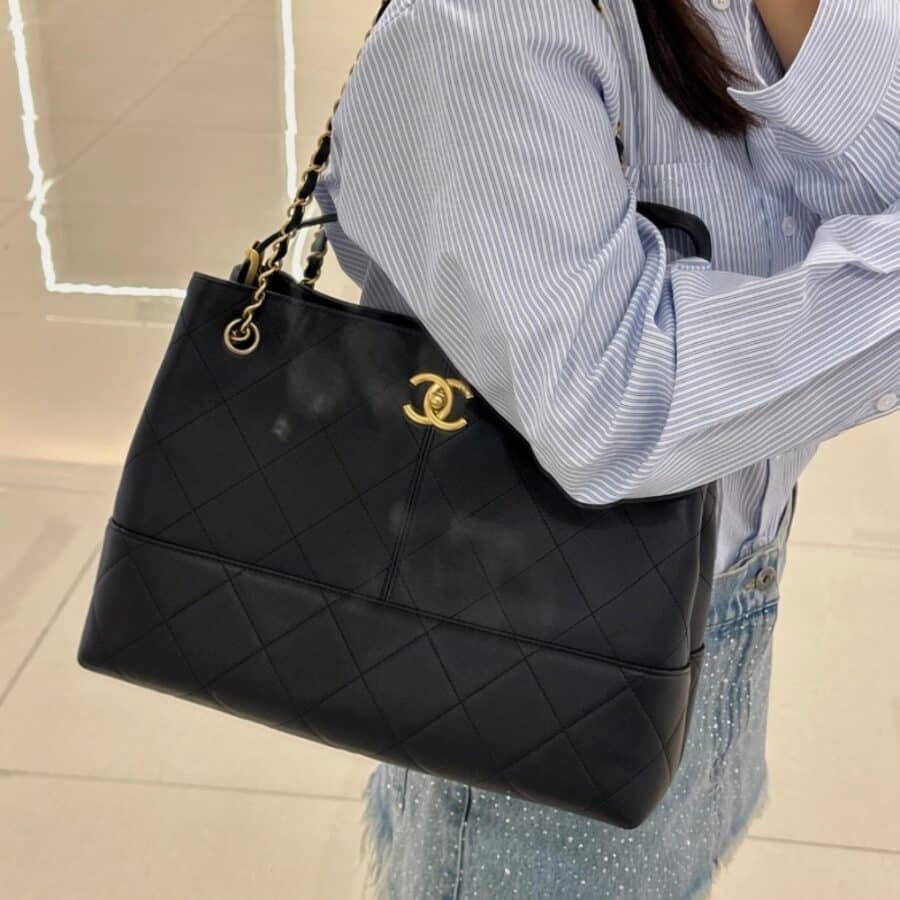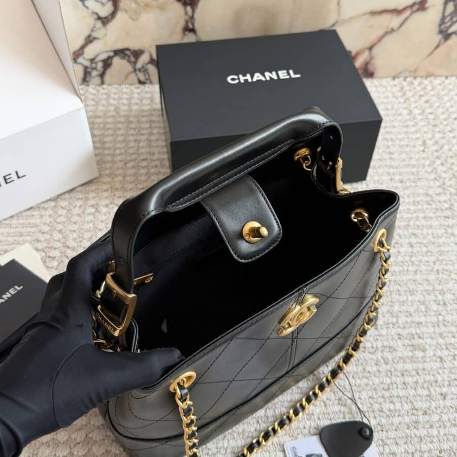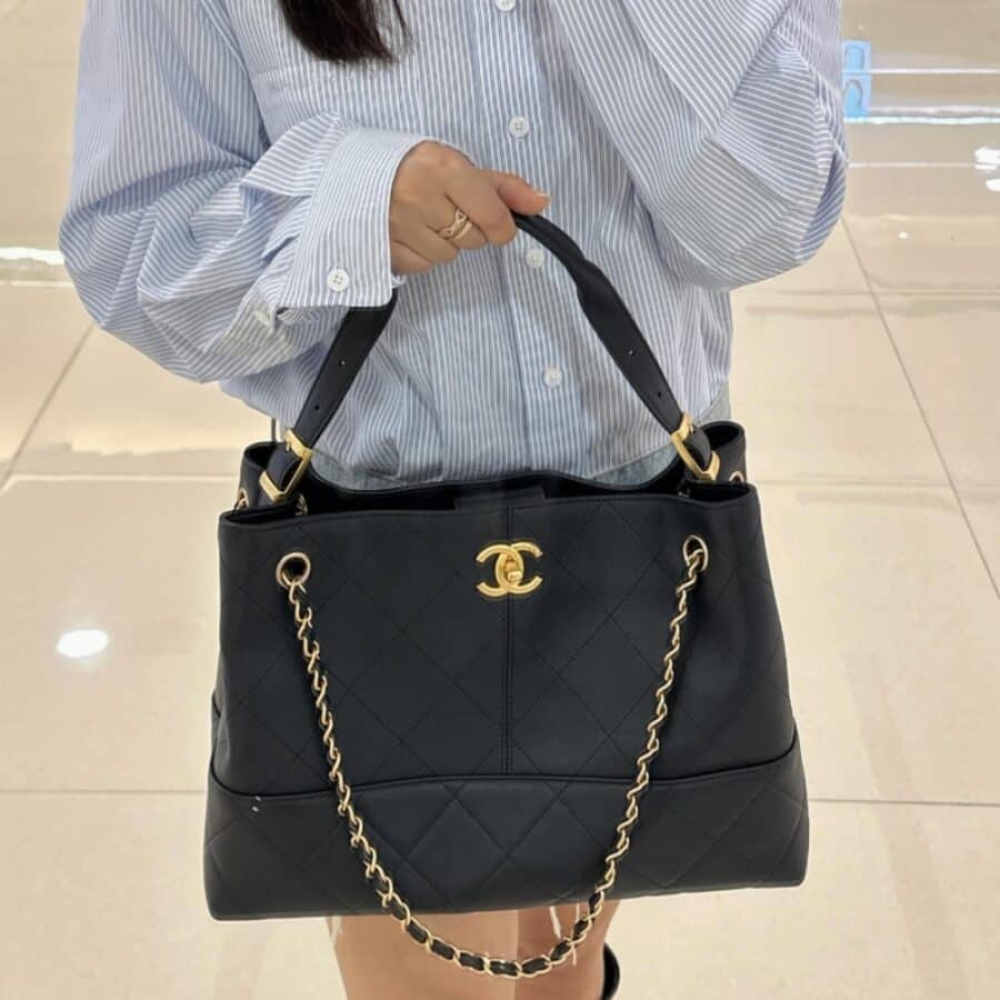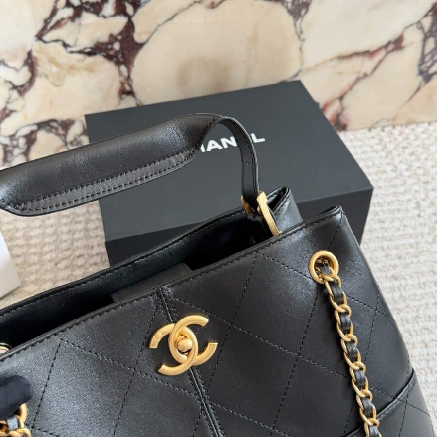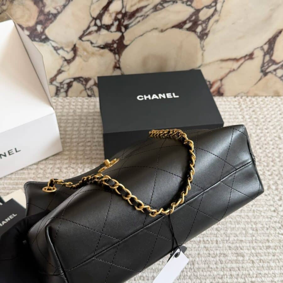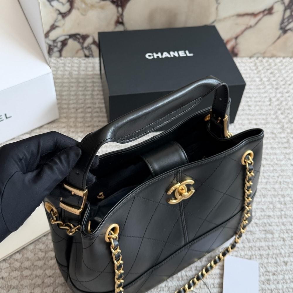 Replica 1:1 – Chanel 25A Hobo Bag Gold Tone Hardware Black 28Cm