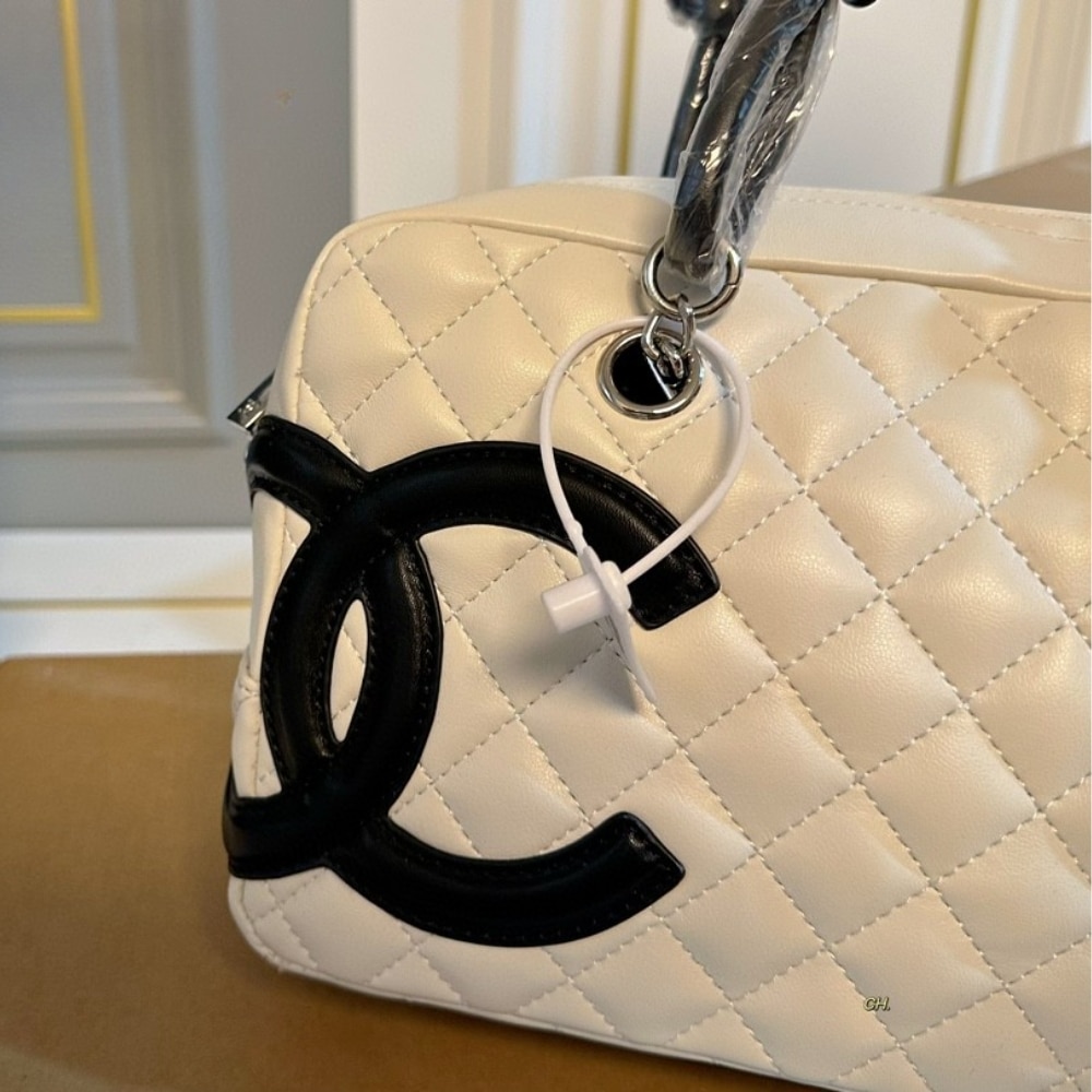 Chanel Cambon Bowler Bag Quilted Leather White And Black 26 cm / 10.2 inches