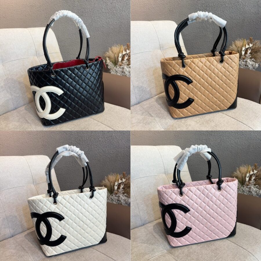 This Chanel Cambon Line Medium Tote Bag is crafted from quilted leather in a crisp black and white contrast, highlighted by the bold oversized CC logo. Sized at 28cm, it offers a spacious interior ideal for daily use, work. A timeless luxury tote that blends practicality with iconic Chanel style.