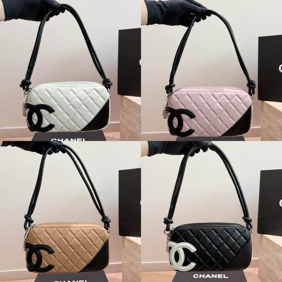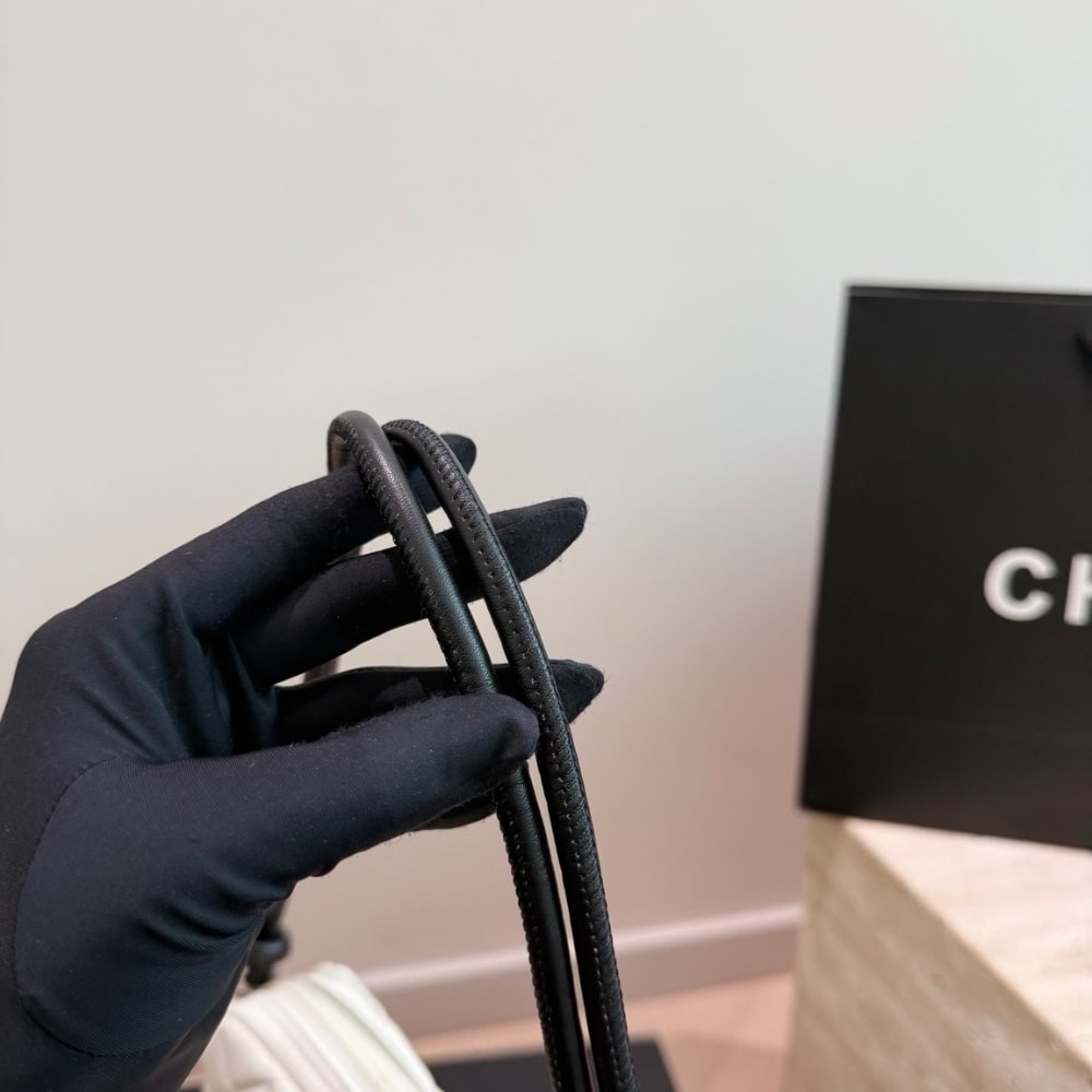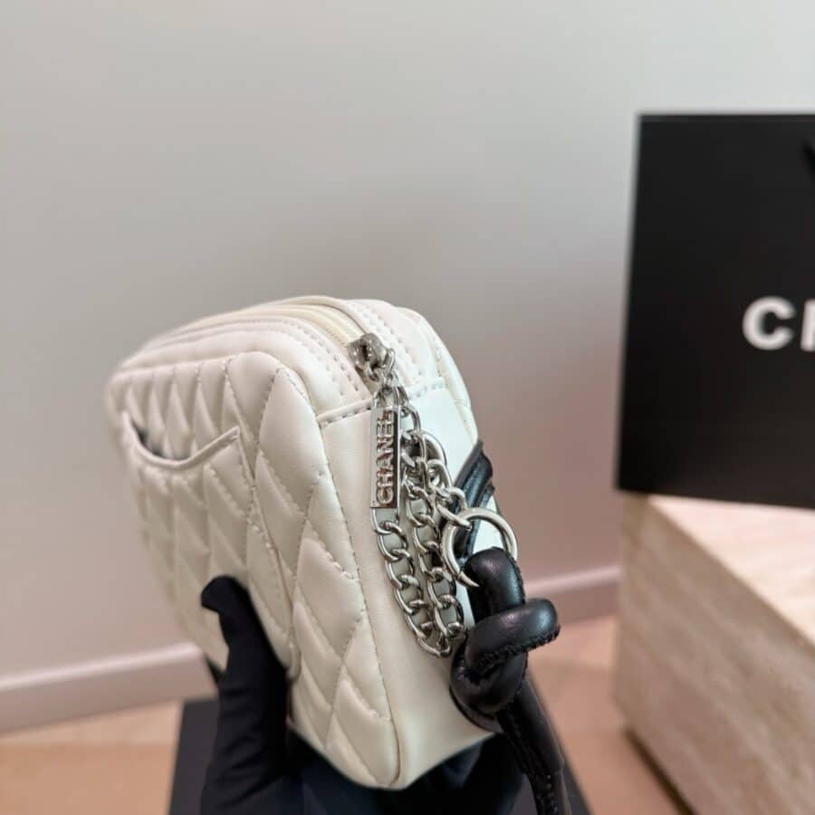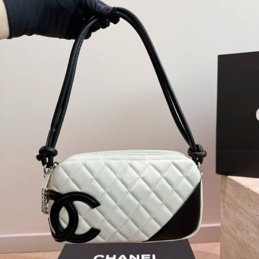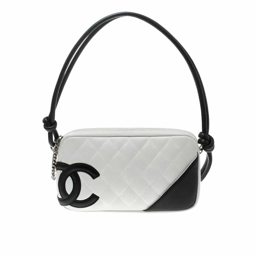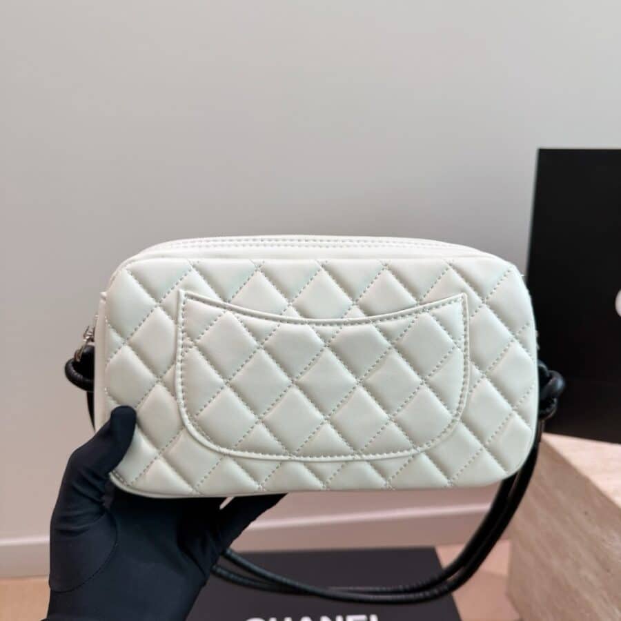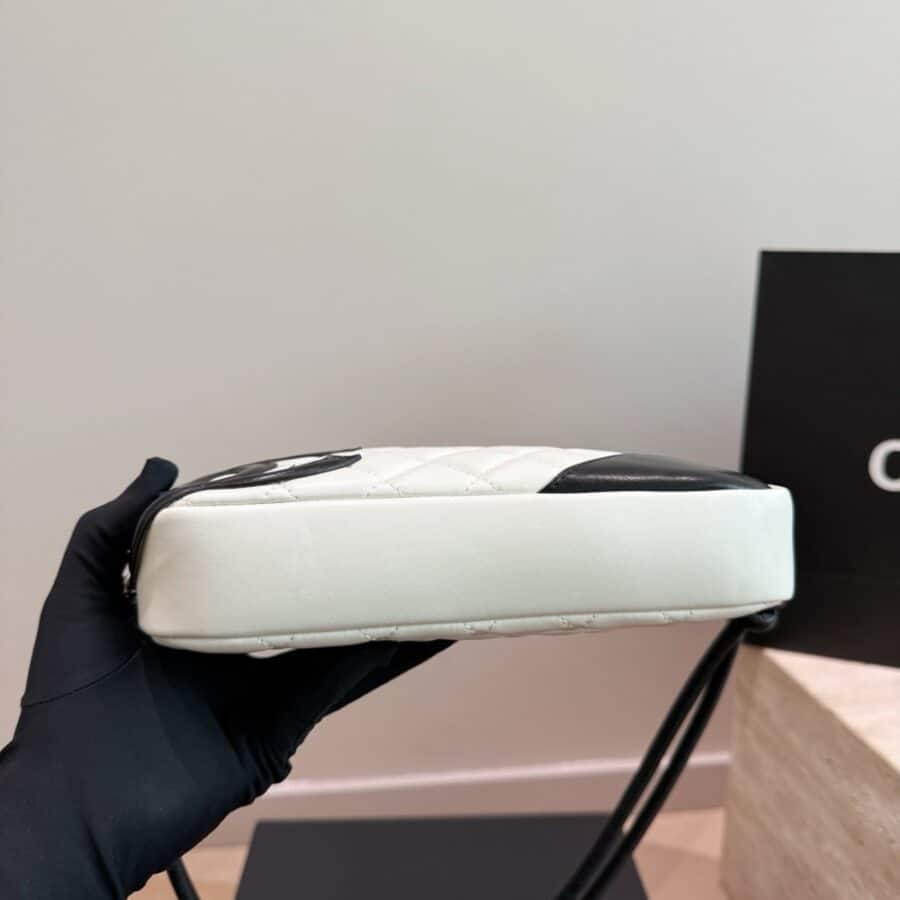 Chanel Cambon Pochette Quilted Leather White And Black 22Cm