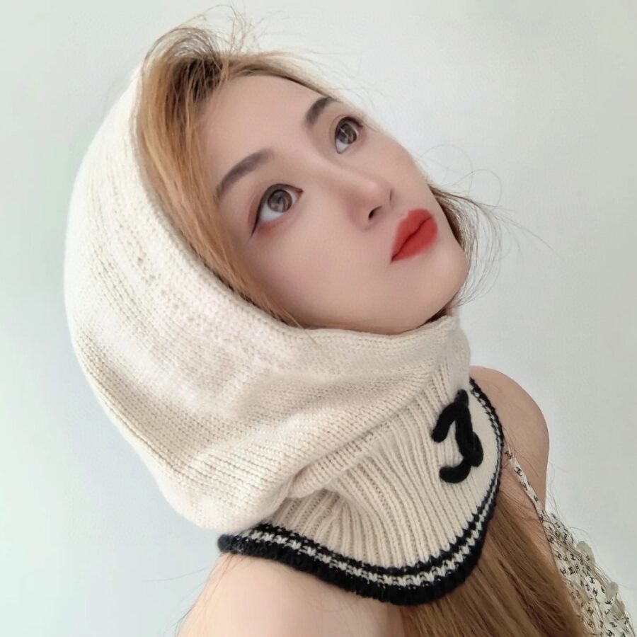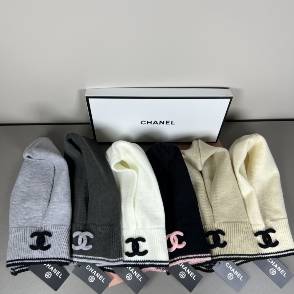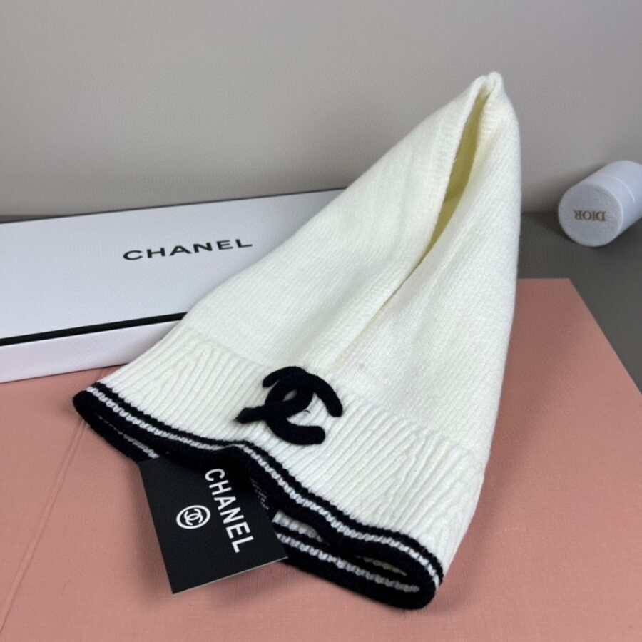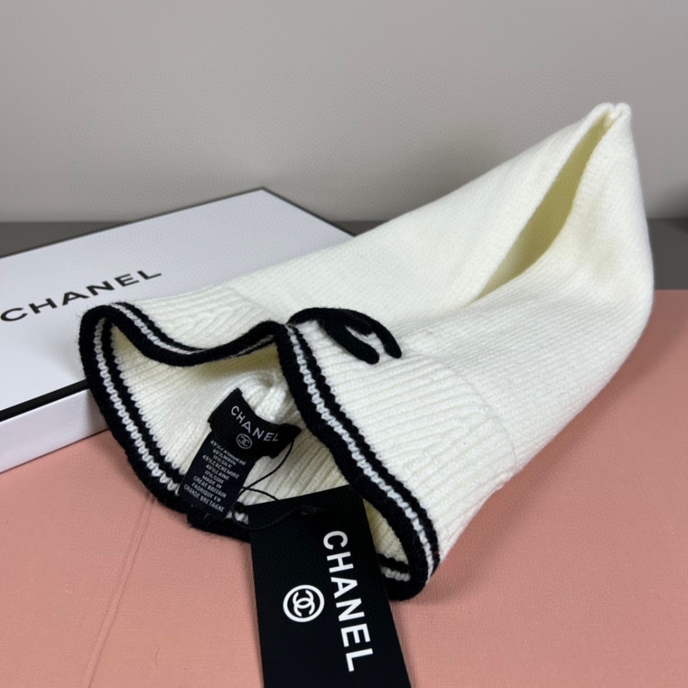 Chanel Cashmere Balaclava Light Beige And Black / Cashmere / Casual Winter Accessory