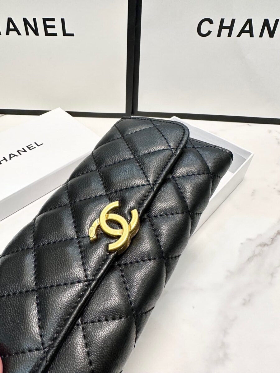Chanel CC Logo Long Flap Wallet Gold Black / 19Cm / 7.4 inches