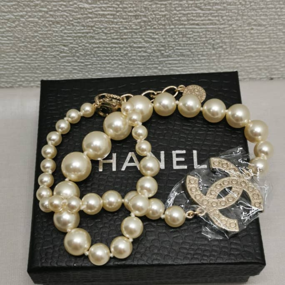Chanel CC Metallic Gold Tone Coco Faux Pearl Necklace