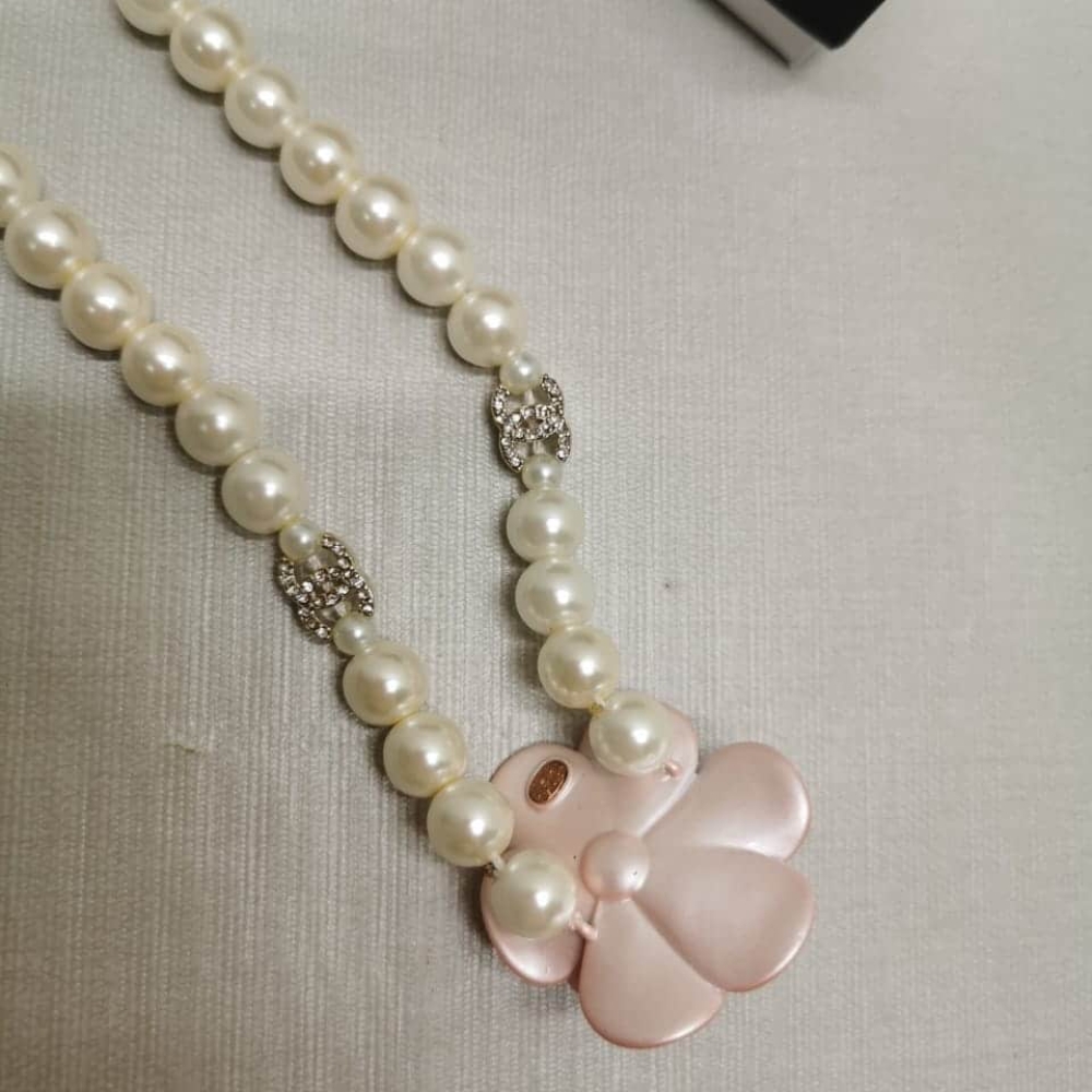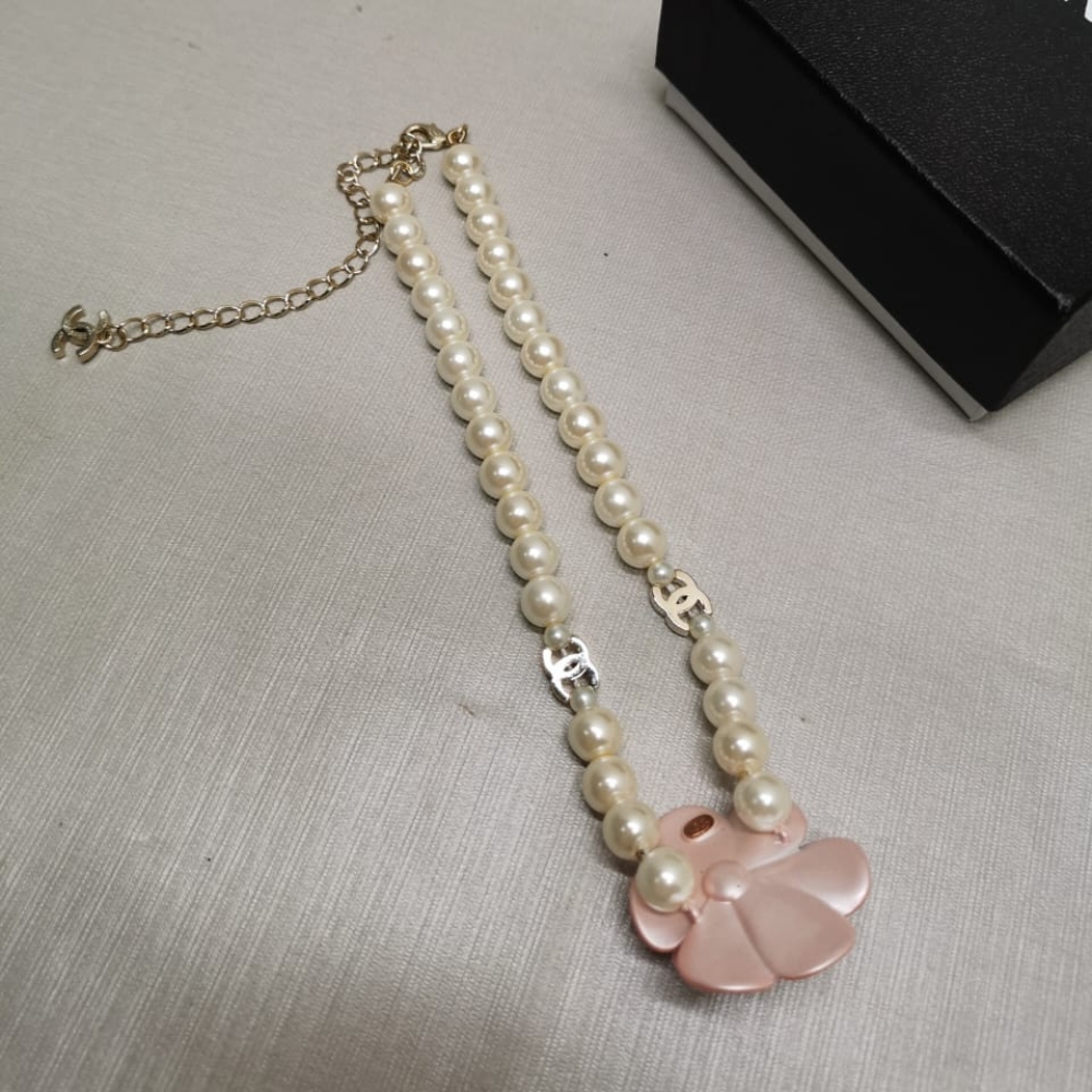 Chanel Choker In Metal Glass Pearls Gold With Pink Pearly Flower ABA025 B09960 NL921