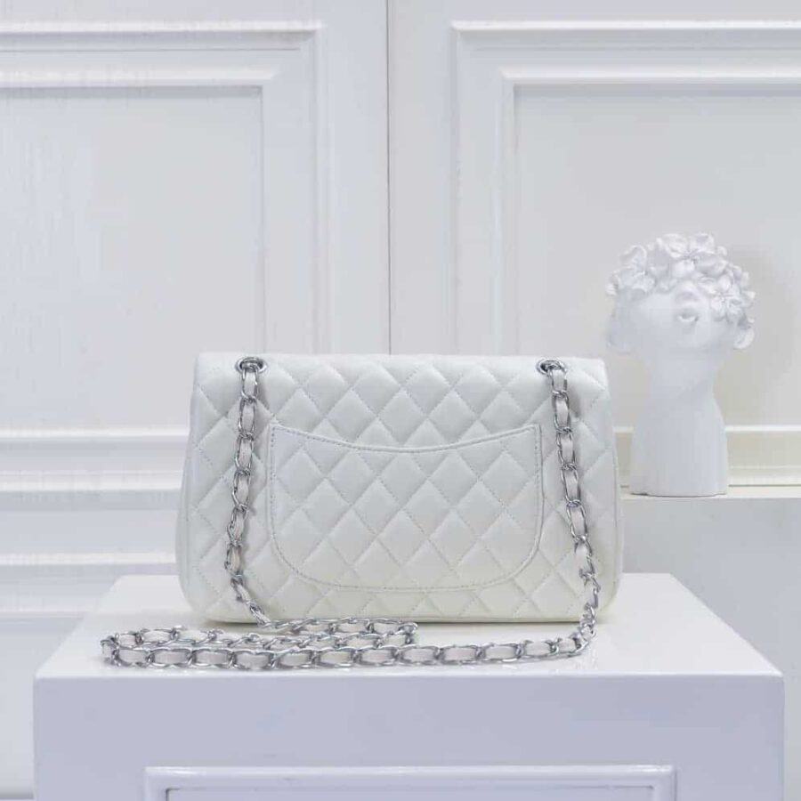 Chanel Classic Double Flap Bag White Silver Hardware / 25cm/ 10.0 inches