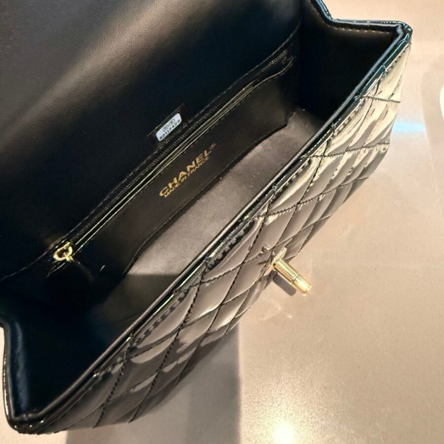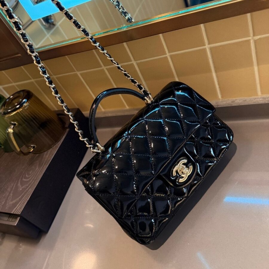 Chanel Classic Mini Bag In Shiny Leather With Handle Black 20 cm / 7.9 inches