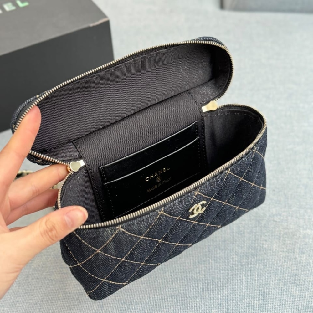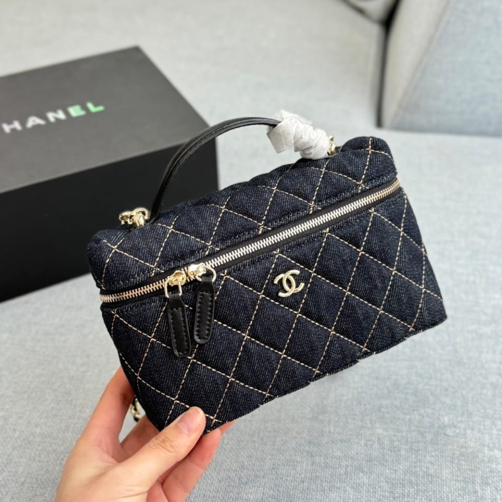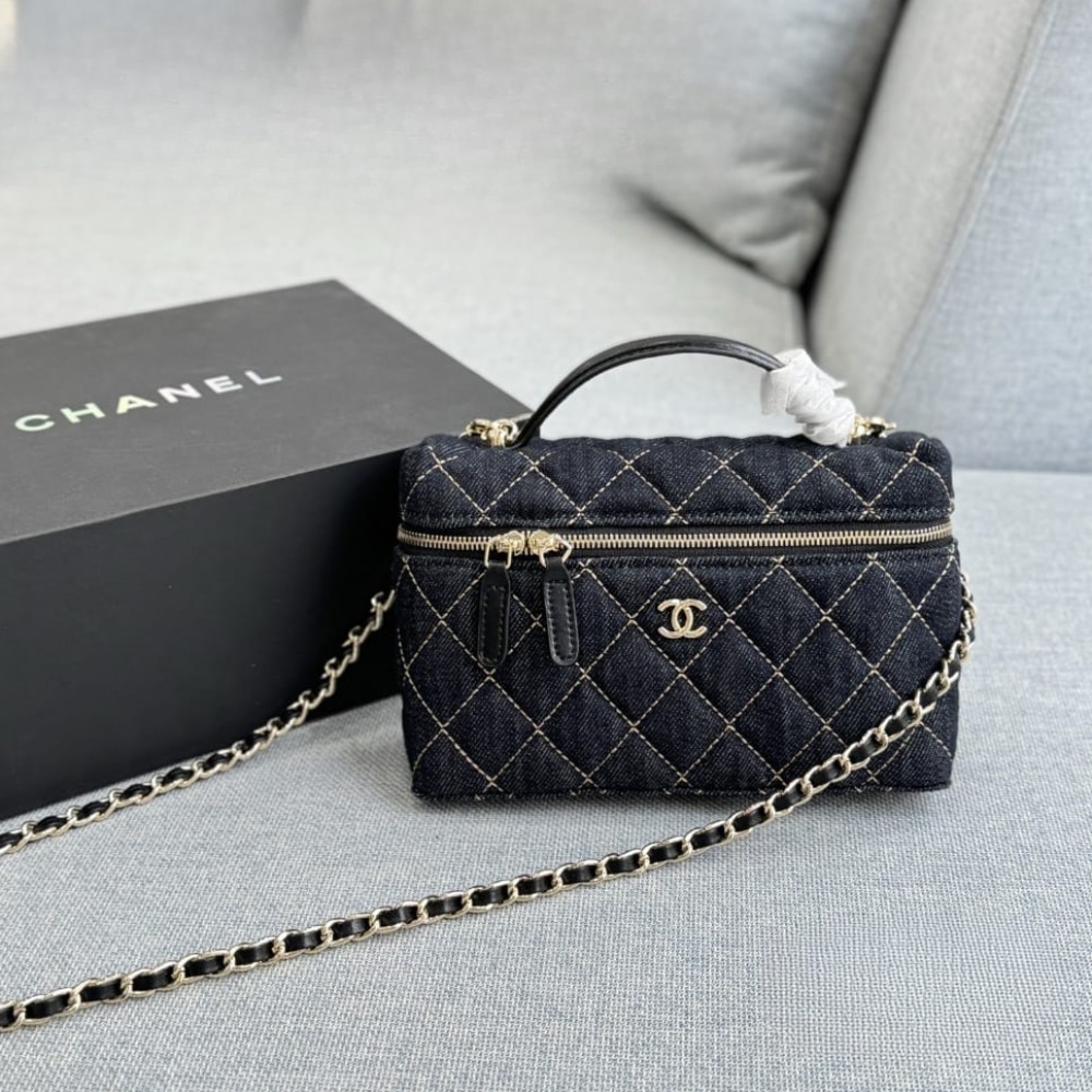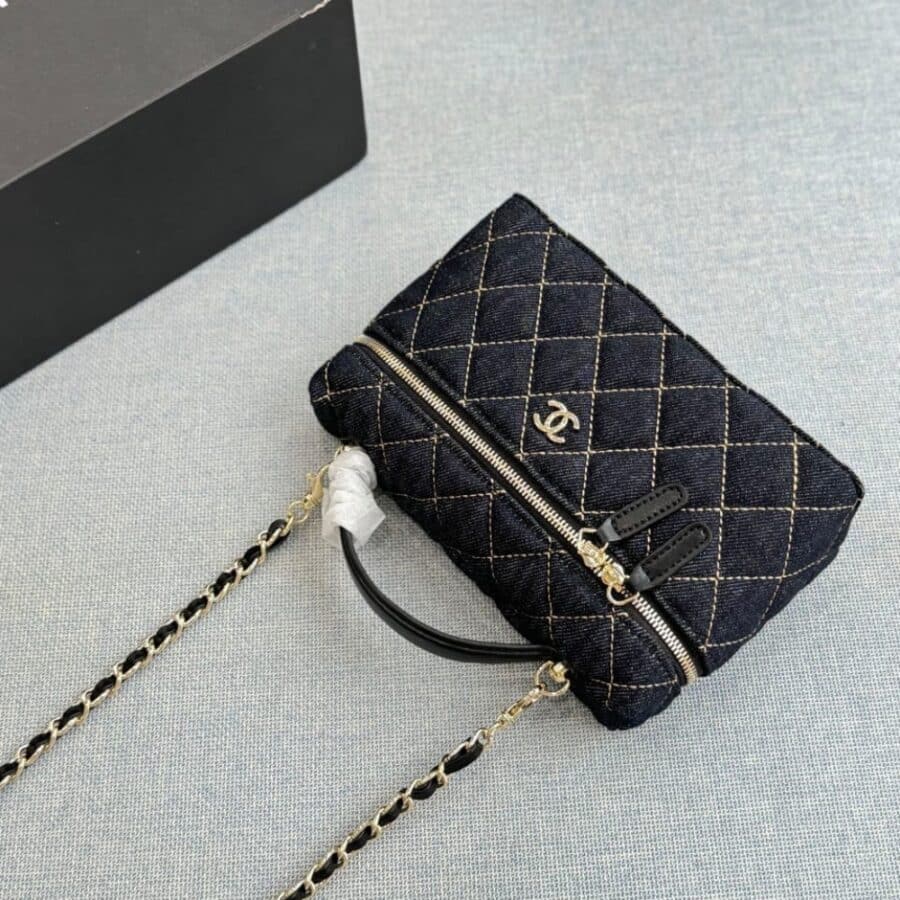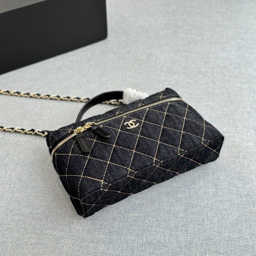 1:1 Replica Bag – Chanel Classic Vanity with Chain Gold Metal Denim Dark Blue 19cm AP4385 B23492 U7663