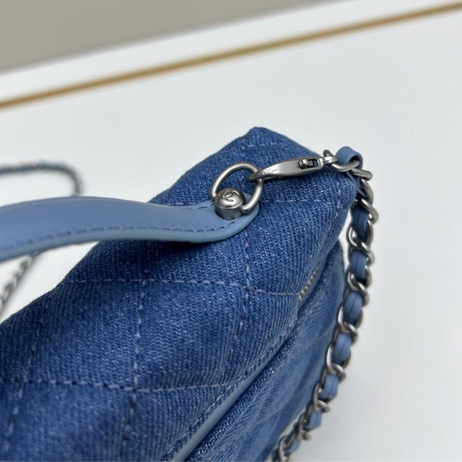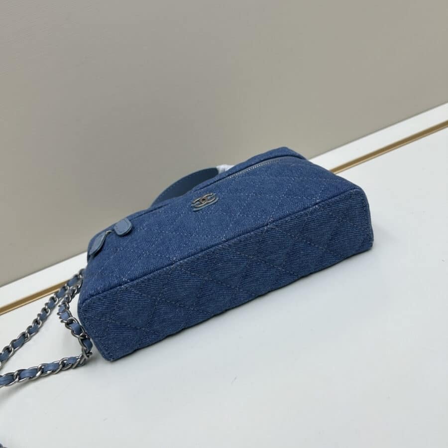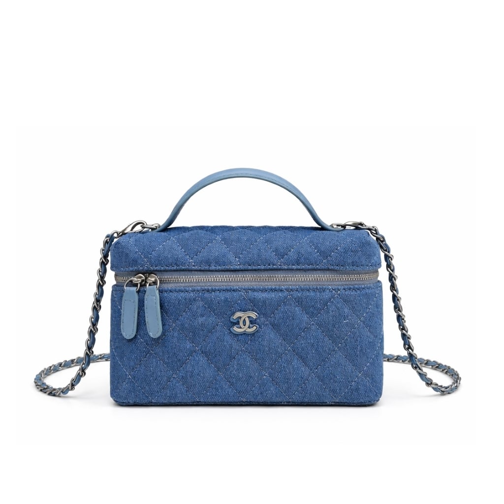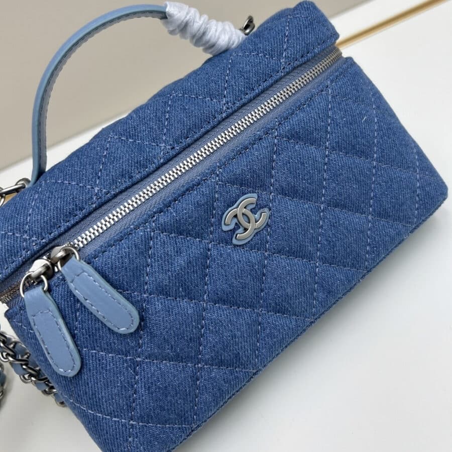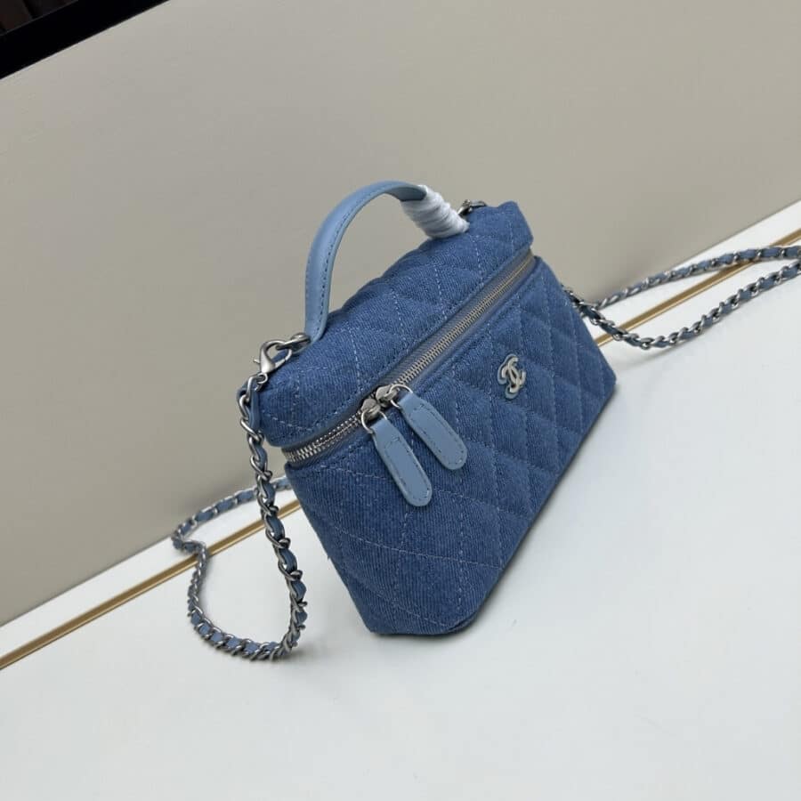 Replica 1:1 – Chanel Classic Vanity With Chain Silver Tone Denim Blue 19cm