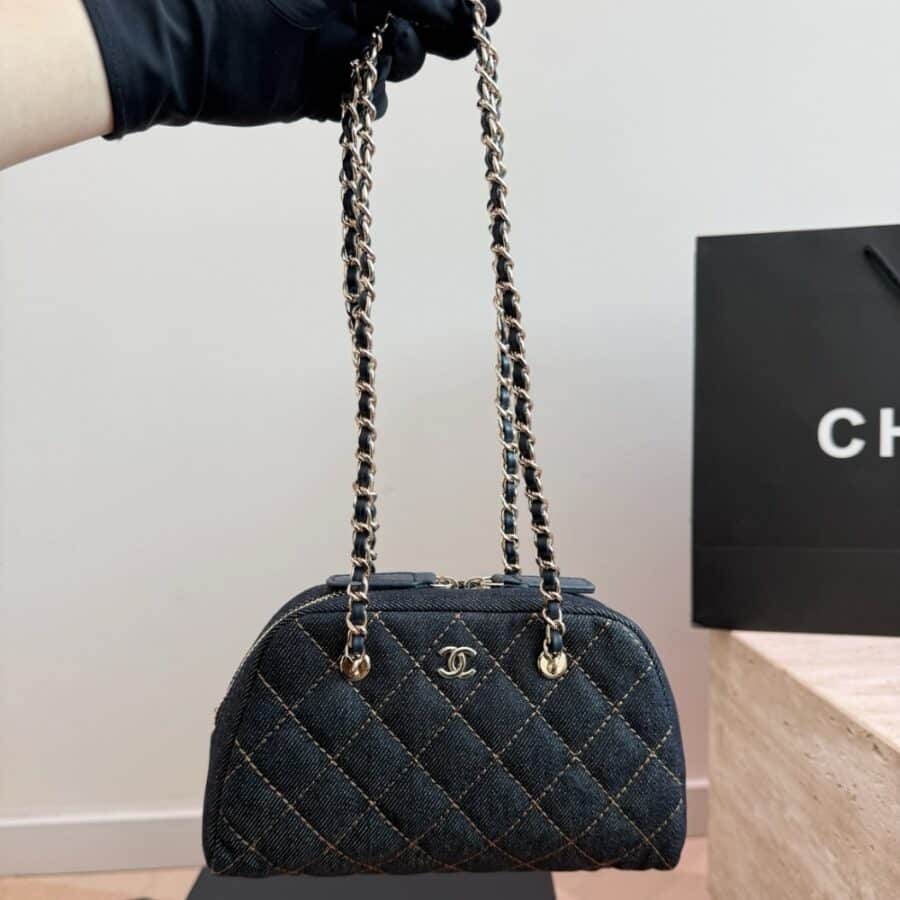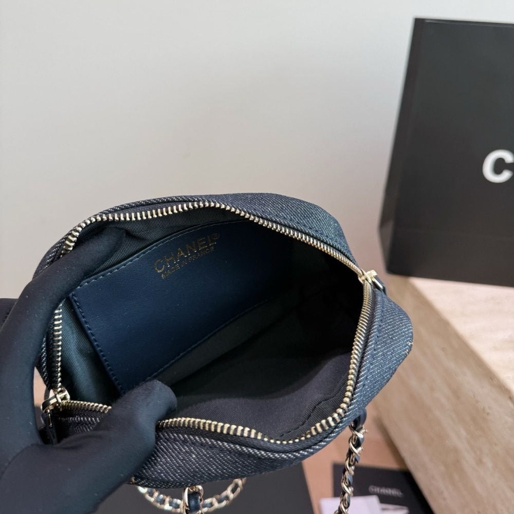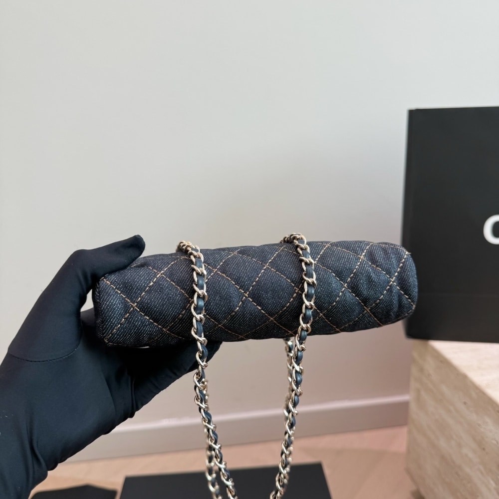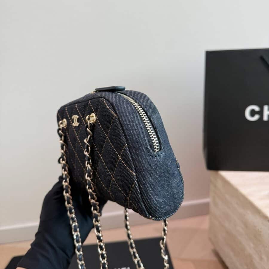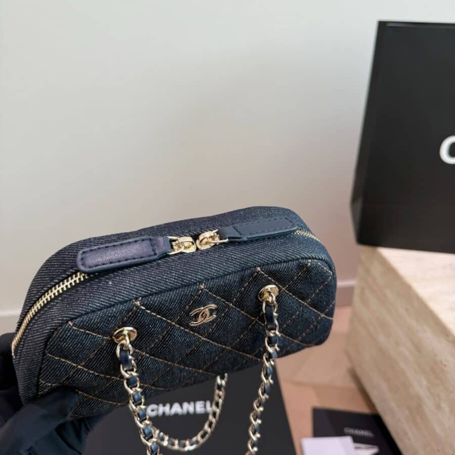 Replica 1:1 – Chanel Clutch With Strap Gold Metal Denim Blue 20cm