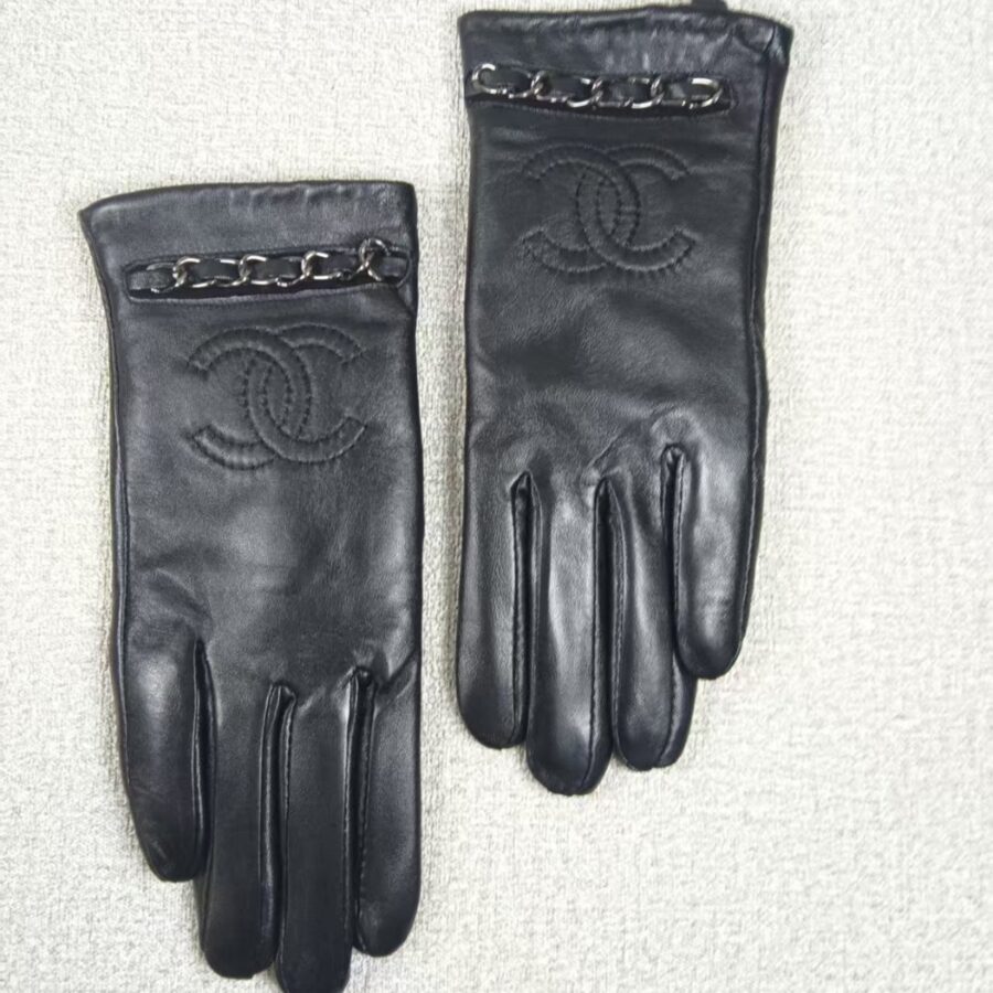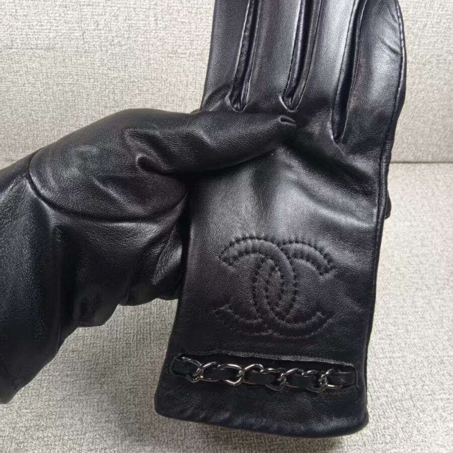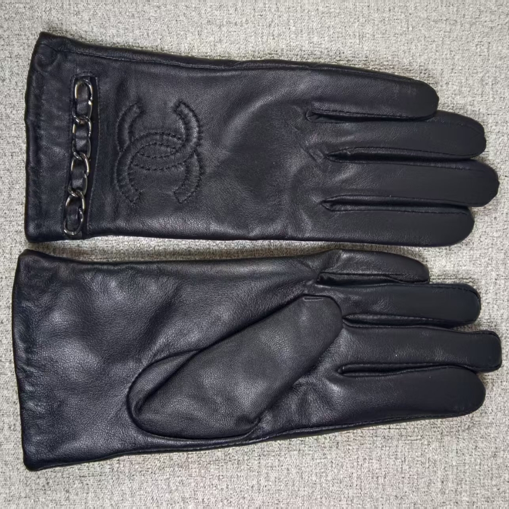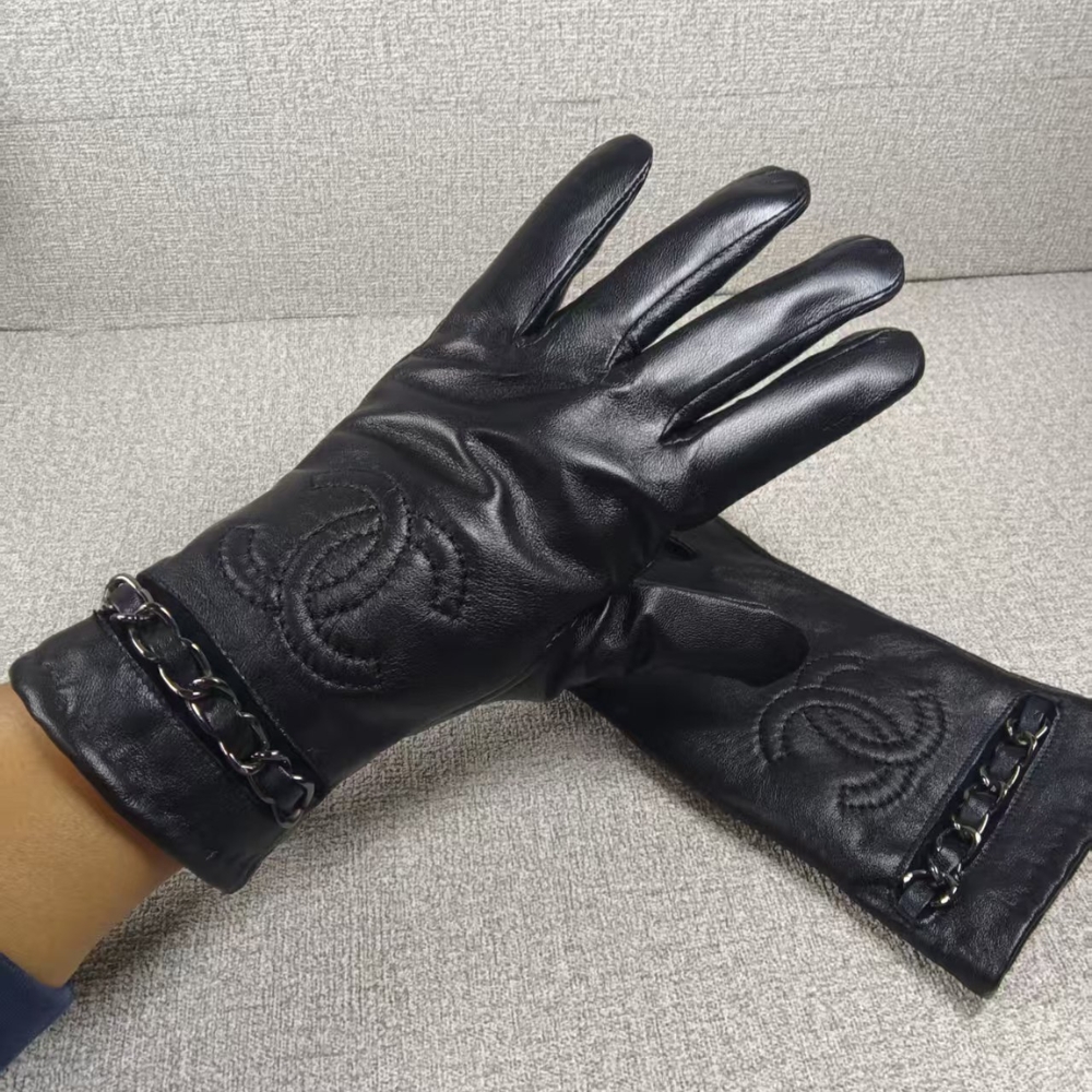Chanel Coco Mark Leather and Metal Gloves Black Golden