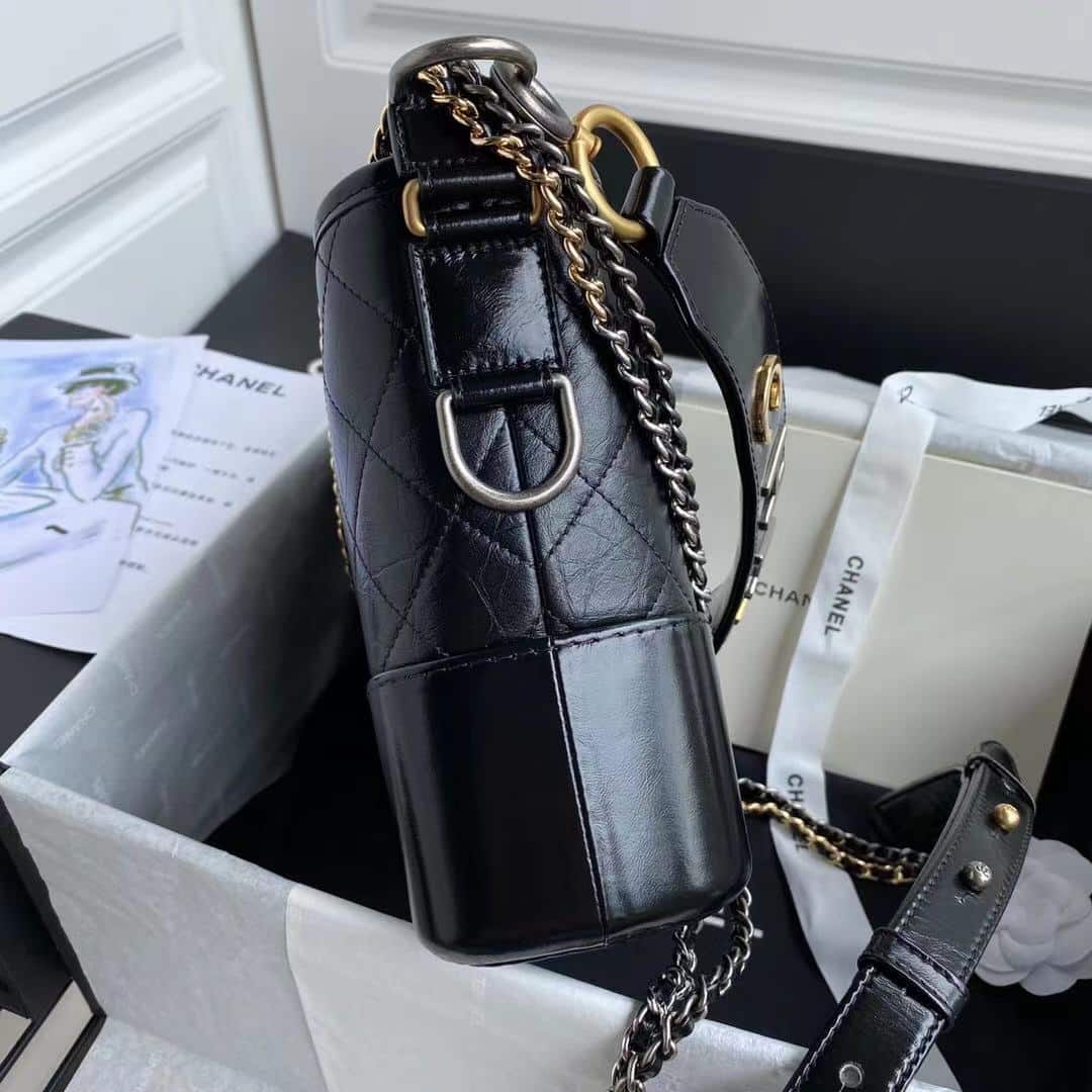 Chanel Gabrielle Small Hobo Bag Smooth Gold Silver Tone Black 20Cm As1582 B03936 94305