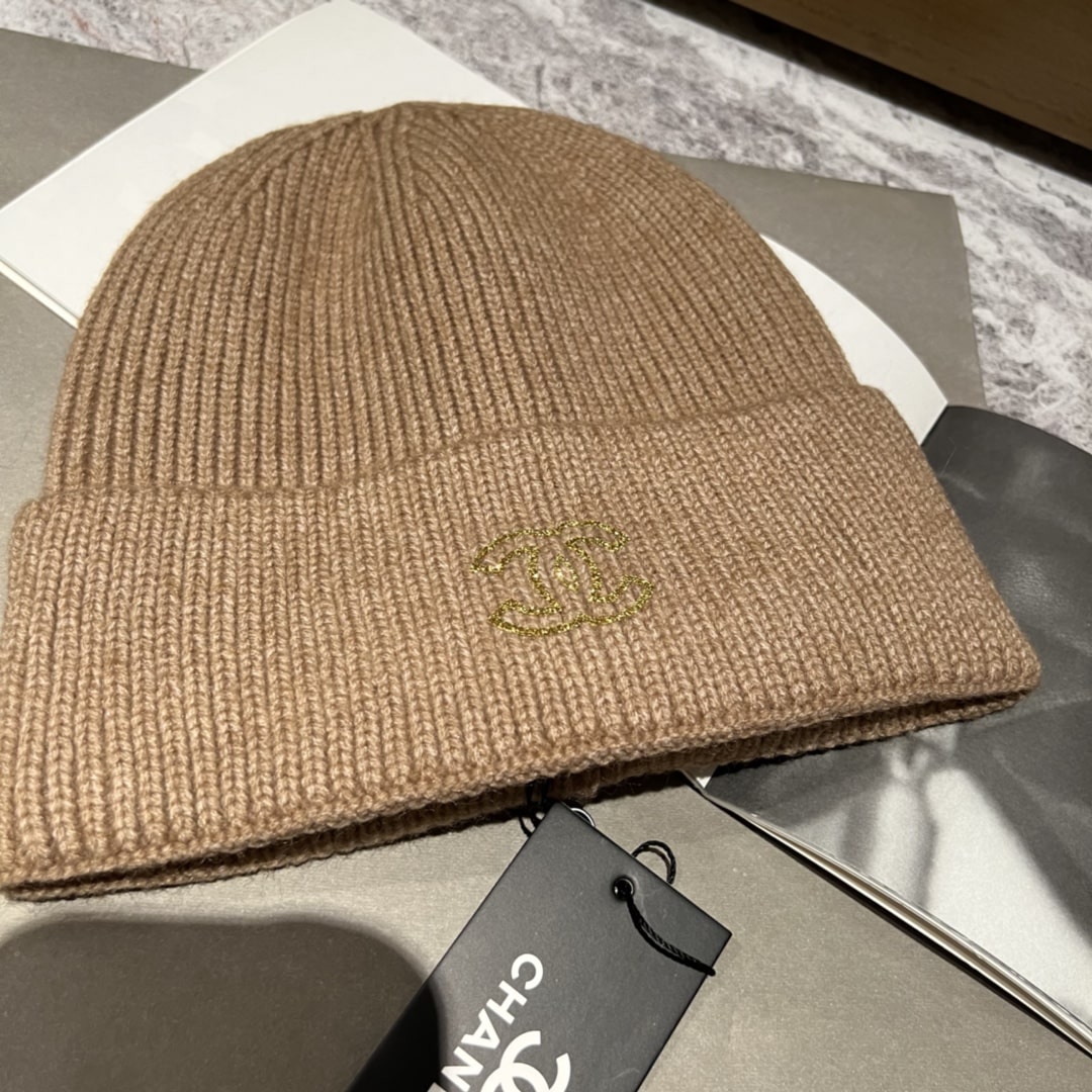 CHANEL GOLD CC WOOL BEANIE BEIGE