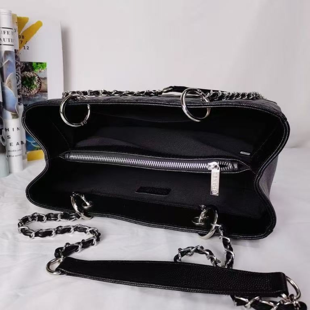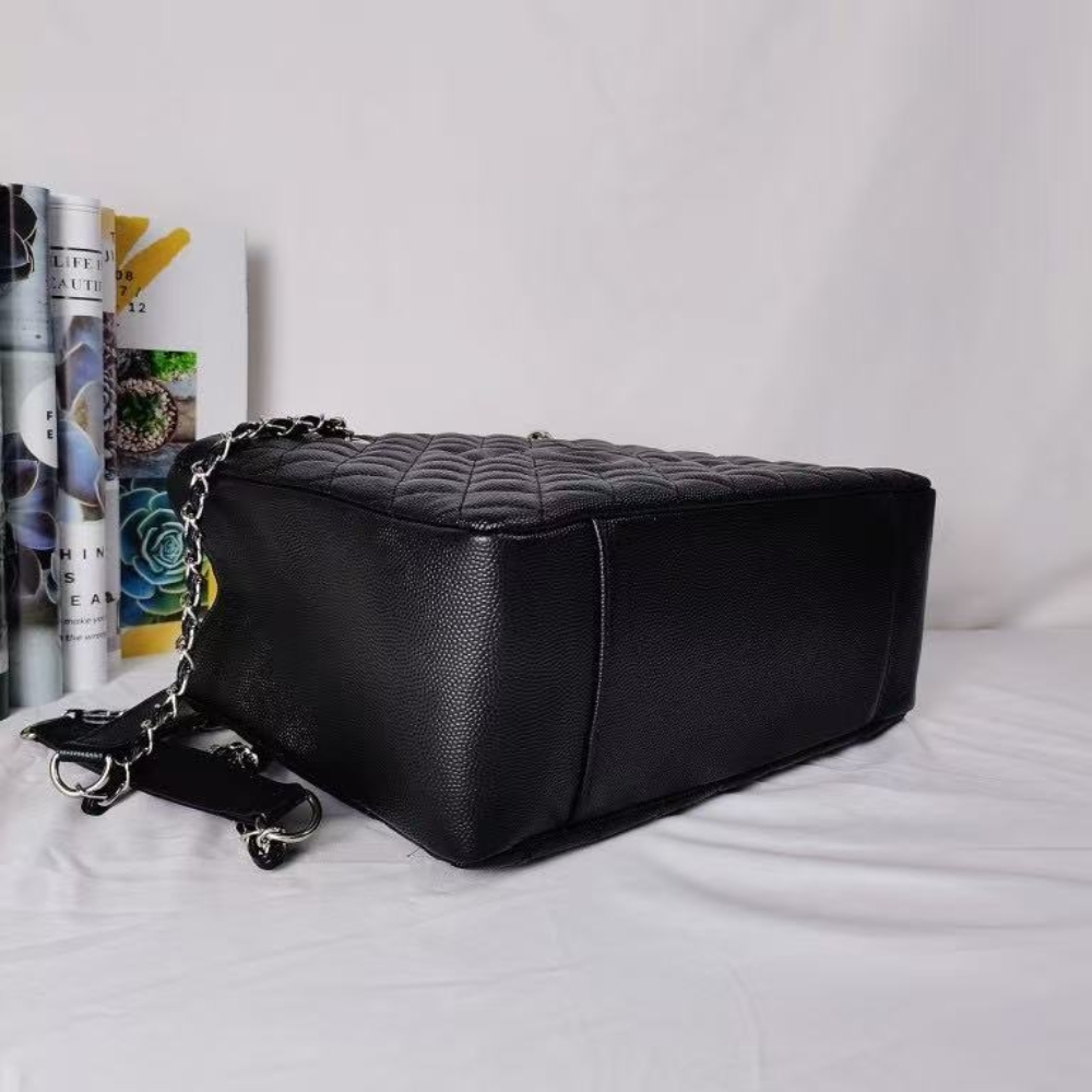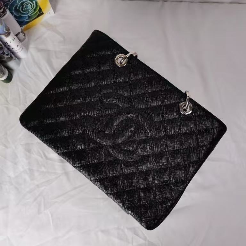 Chanel Grand Shopping Tote Bag / Caviar Leather/ Silver Tone / Black / 34 cm / 13.3 inches / Shoulder Bag / Classic Style for Women