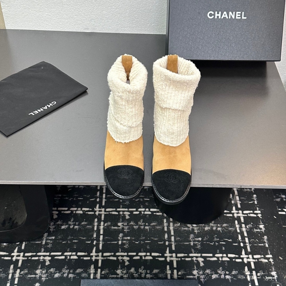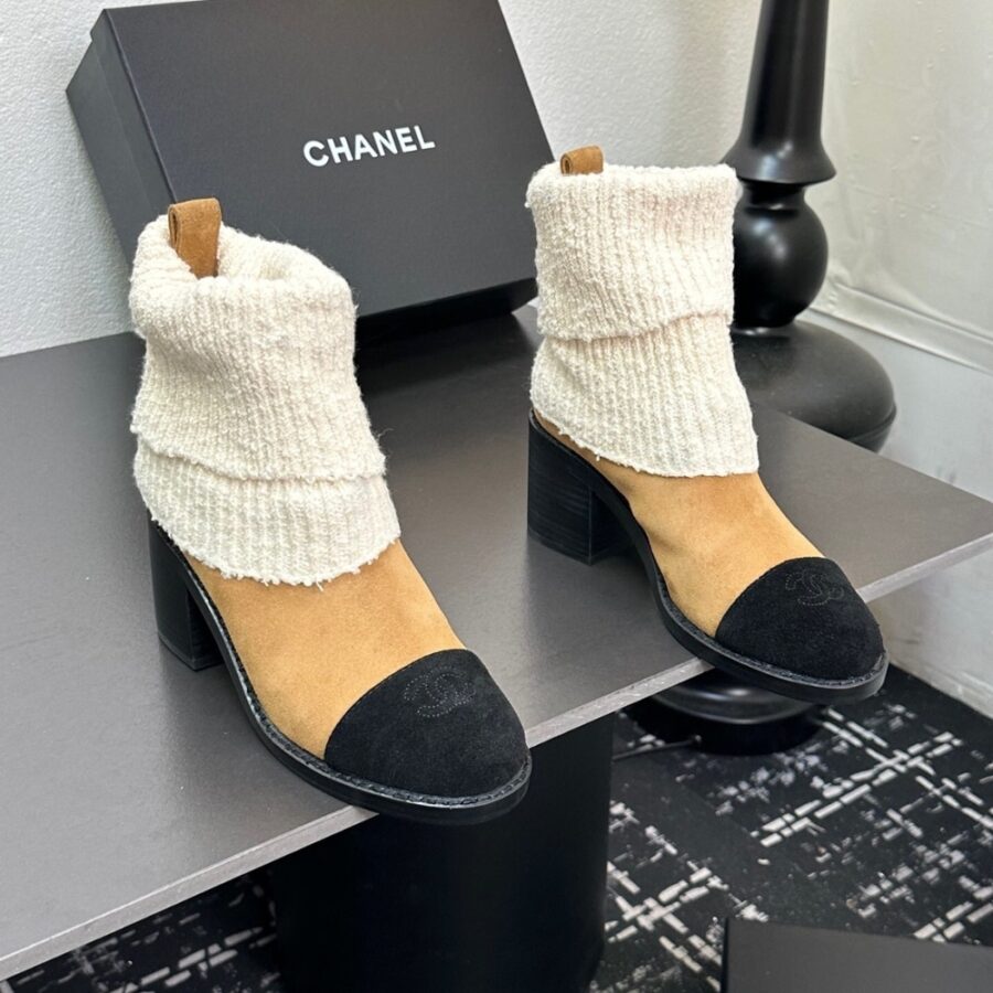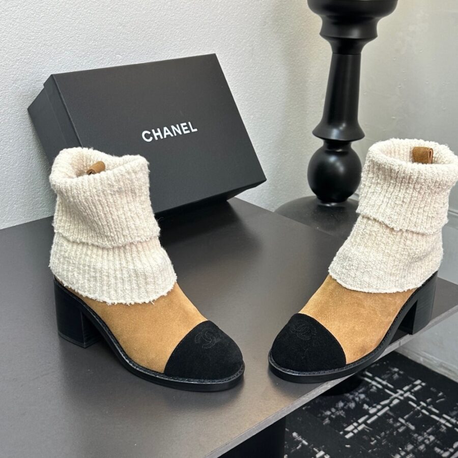 CHANEL KNIT BOOTS BEIGE G46038 B18433 NZZX3