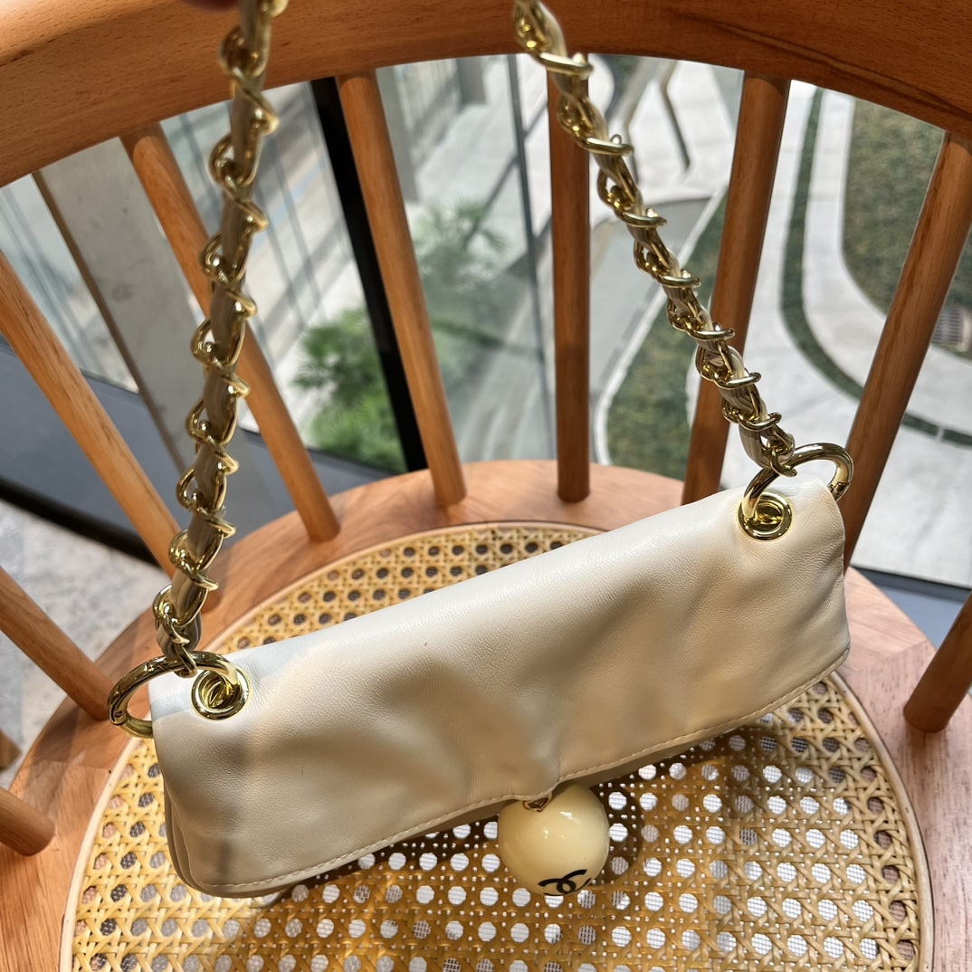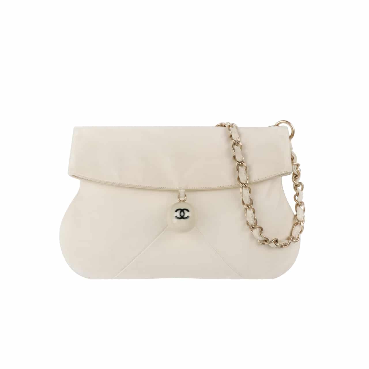 Chanel //Leather Cue Ball Foldover Bag //Ivory// 26cm