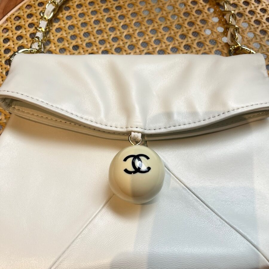 CHANEL LEATHER CUE BALL FOLDOVER BAG IVORY 26CM