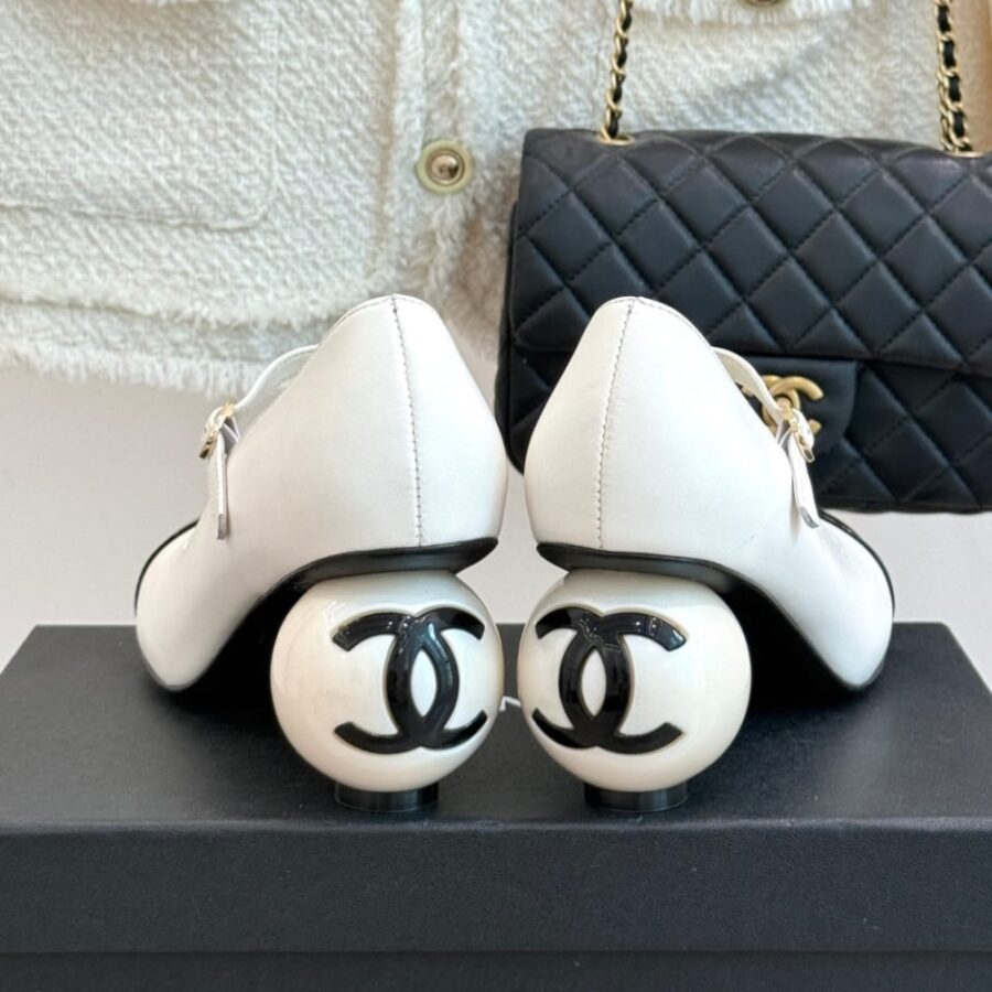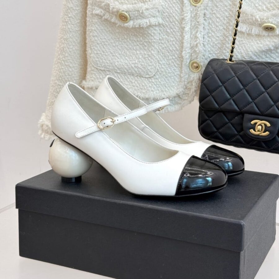 CHANEL MARY JANES PATENT AND IMITATION PEARLS WHITE BLACK G46775 B22202 U4186