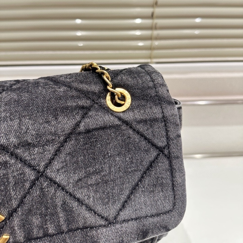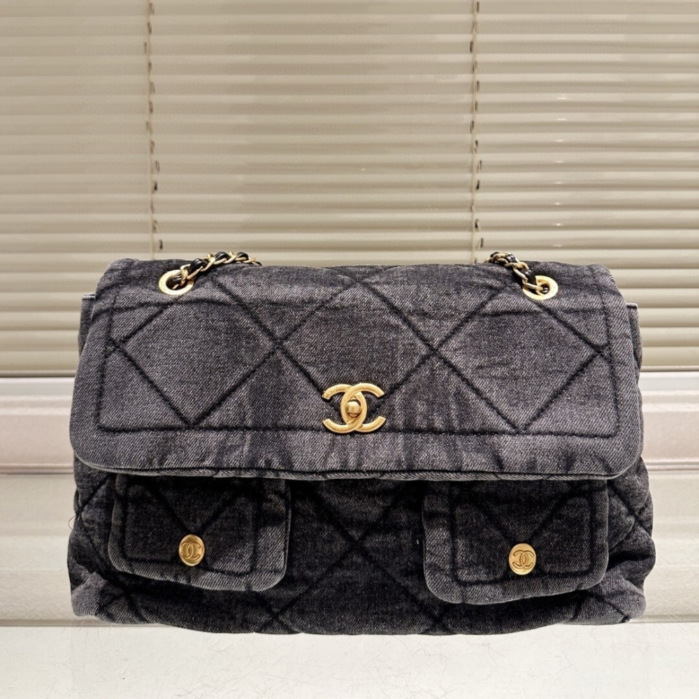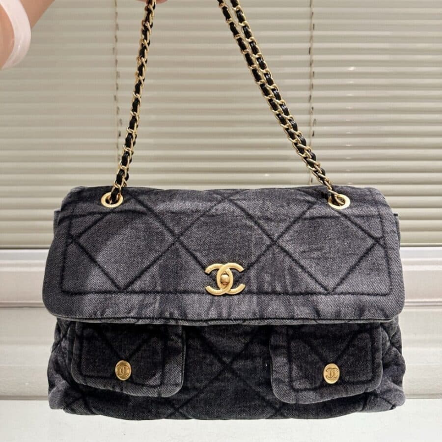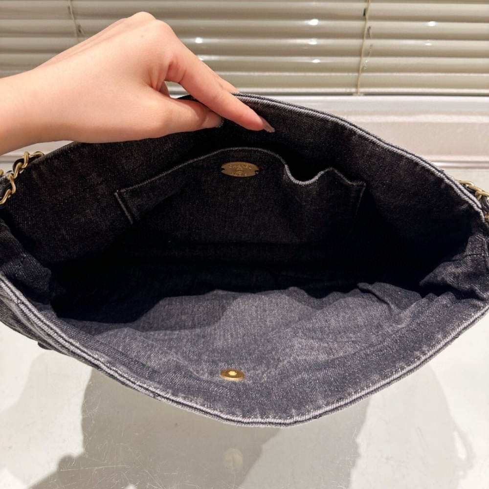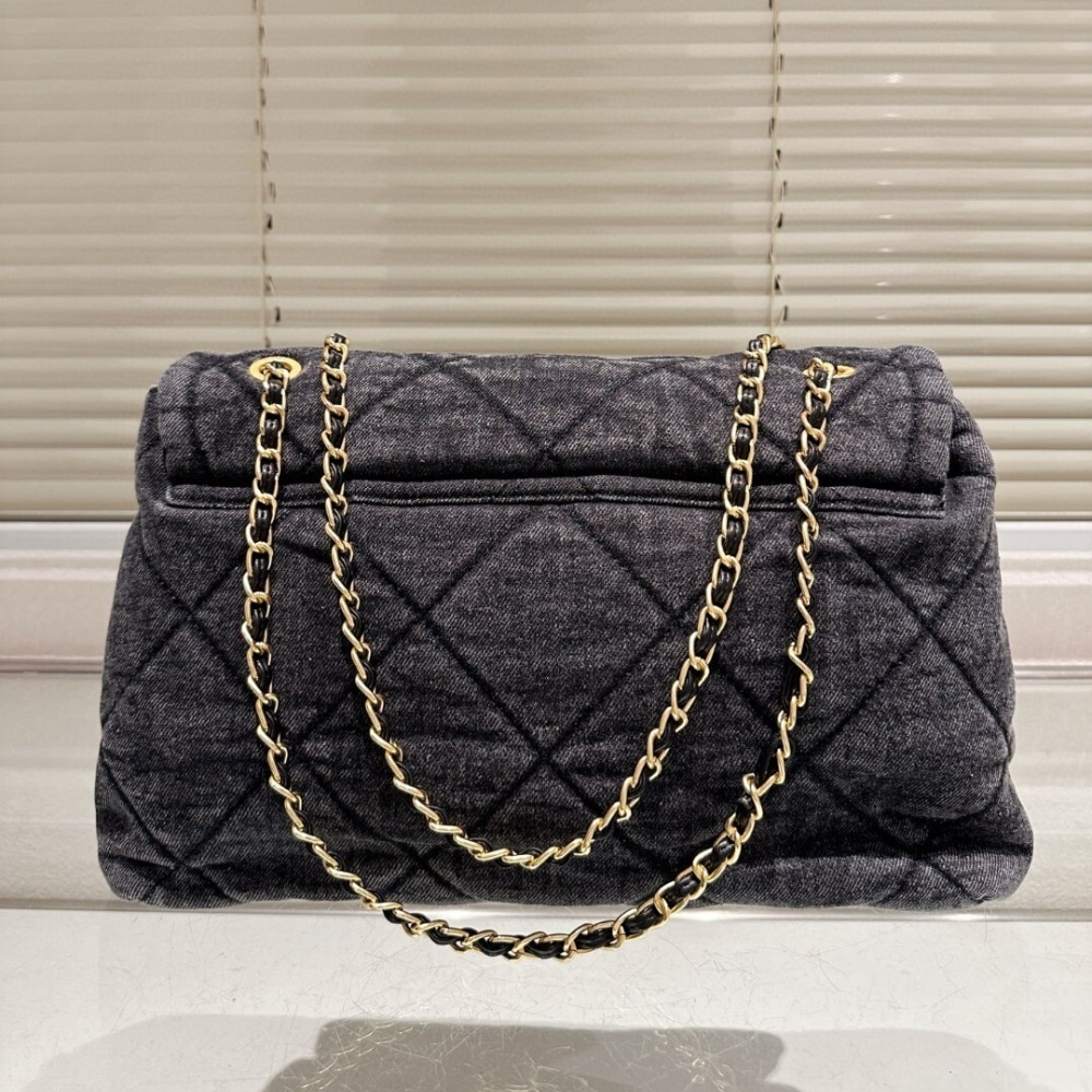Chanel Maxi Flapbag Black / 11.8 x 7.9 inches / Washed Denim / Gold Tone Metal / Fit smartphone, wallet / Daily Bags