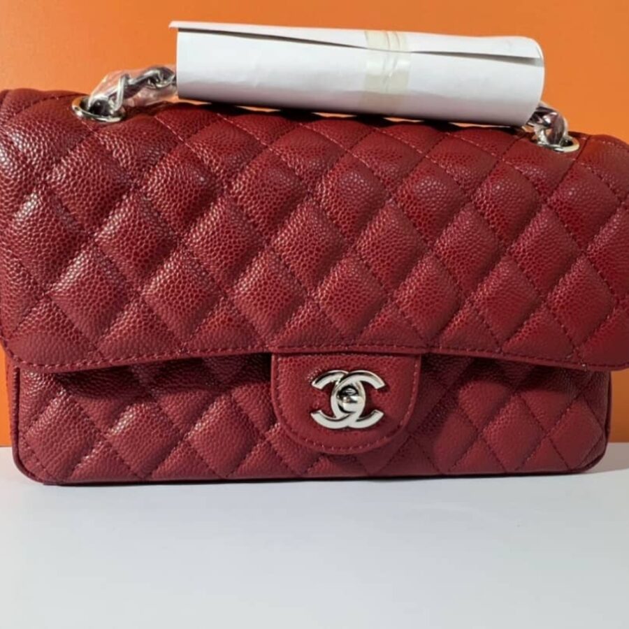 Chanel Medium Classic Flap Bag Sliver Hardware Burgundy / 25Cm / 9.8inches