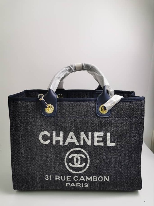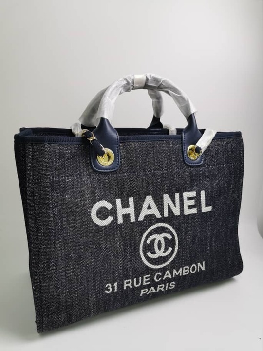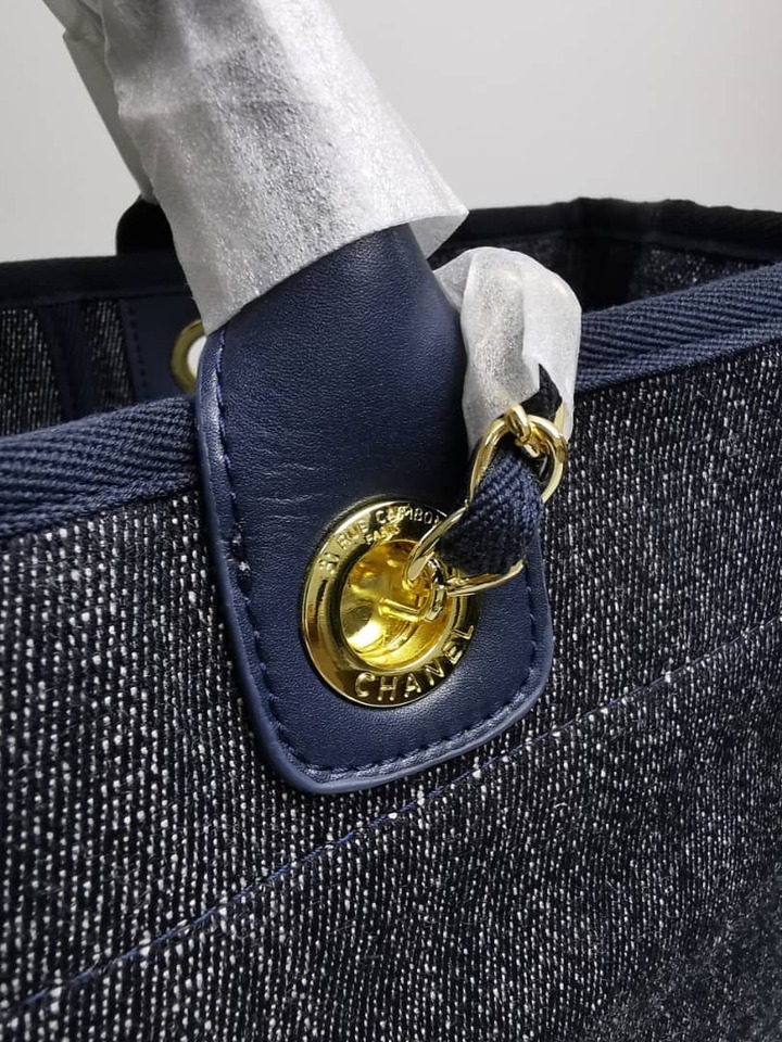 CHANEL MEDIUM DEAUVILLE BLUE CANVAS TOTE 38CM