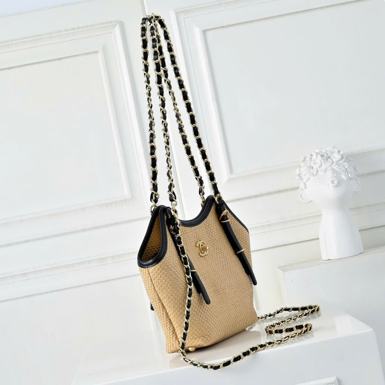 Replica 1:1 – Chanel Medium Shopping Bag Braided Raffia And Gold Tone Metal In Beige 30Cm
