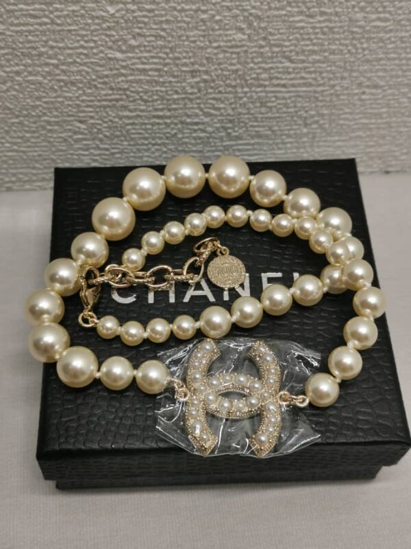 CHANEL METALLIC SILVER TONE COCO FAUX PEARL CC NECKLACE