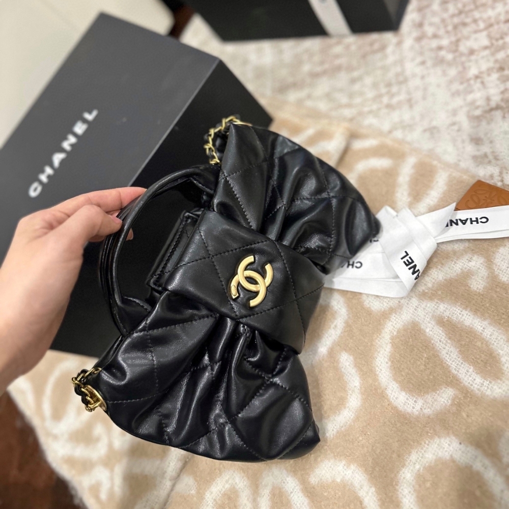 Chanel Mini Bow Bag Black / 8.3 x 4.7 inches / Gold Tone Metal / Fit Daily Essentials / Daily Bags
