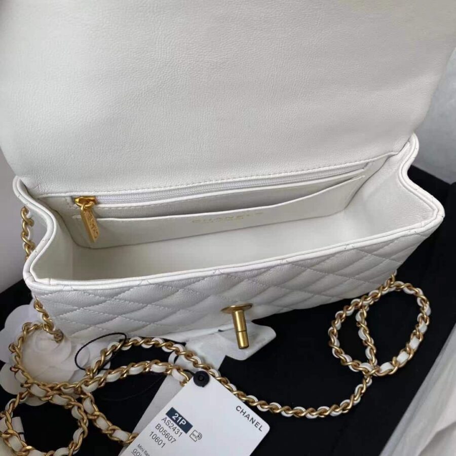 CHANEL MINI FLAP BAG WITH TOP HANDLE WHITE AS2431 20CM