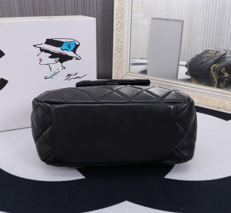 Chanel //Mix Accordion Cc Flap Bag Quilted Glazed //Black//23cm