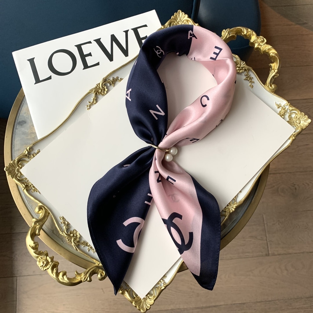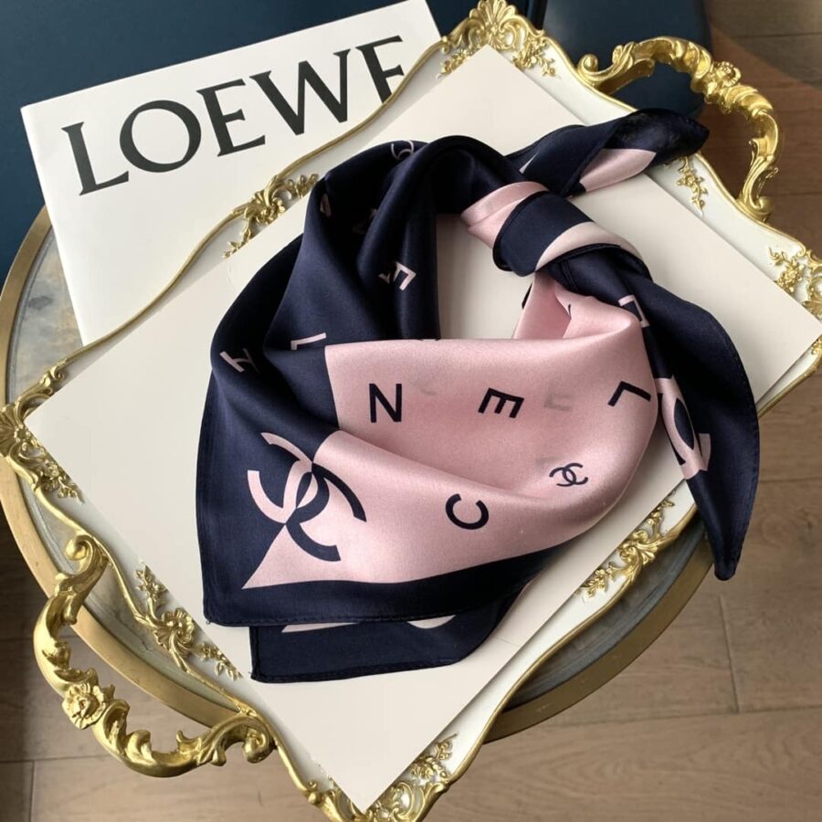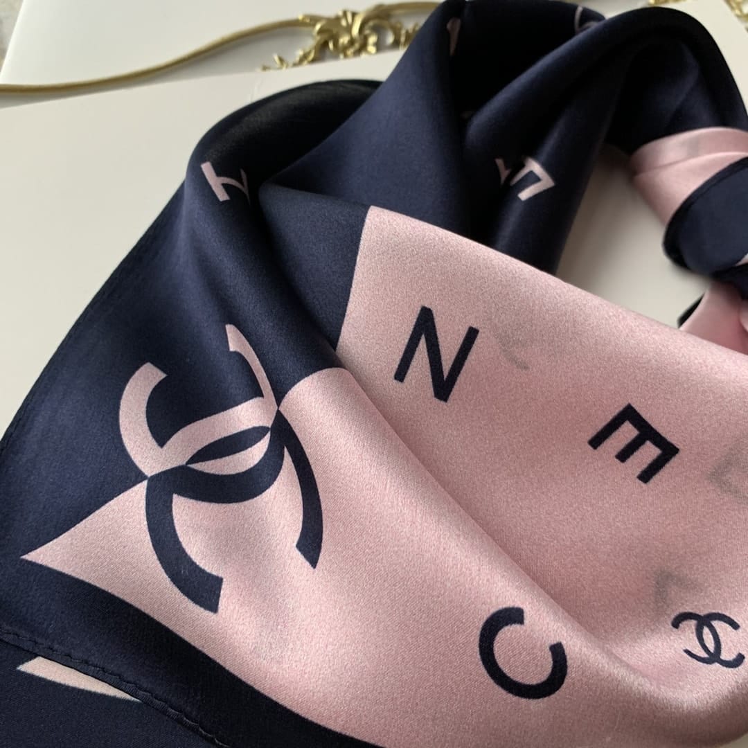 Chanel Multi Letters Square Silk Scarf Pink Blue