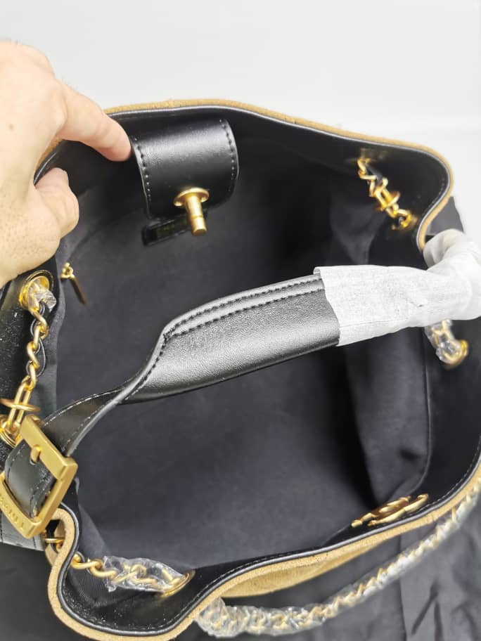 CHANEL SHOPPING BAG GOLD TONE MENTAL BEIGE AND BLACK 36CM AS5657 B20827 U1536