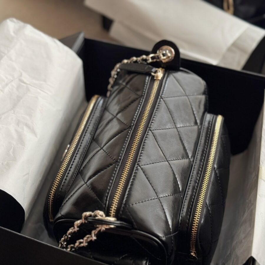 Chanel Small Camera Case Shiny Crumpled & Gold-Tone Metal Black 23 cm / 9.1 inches
