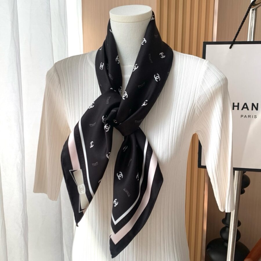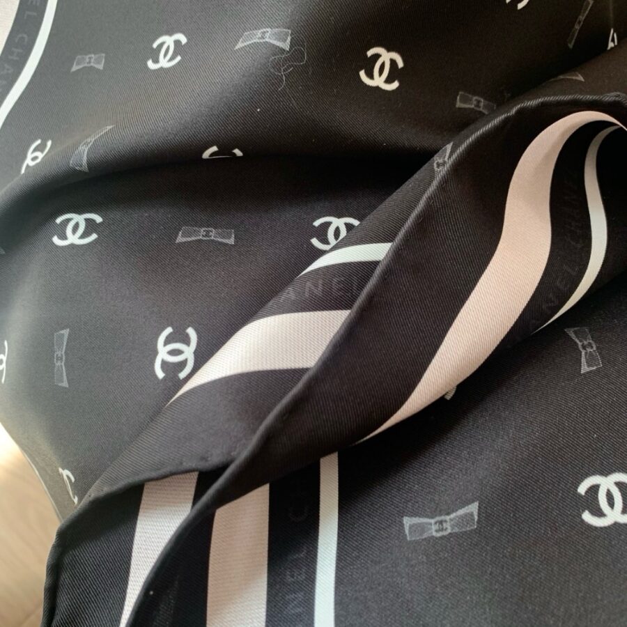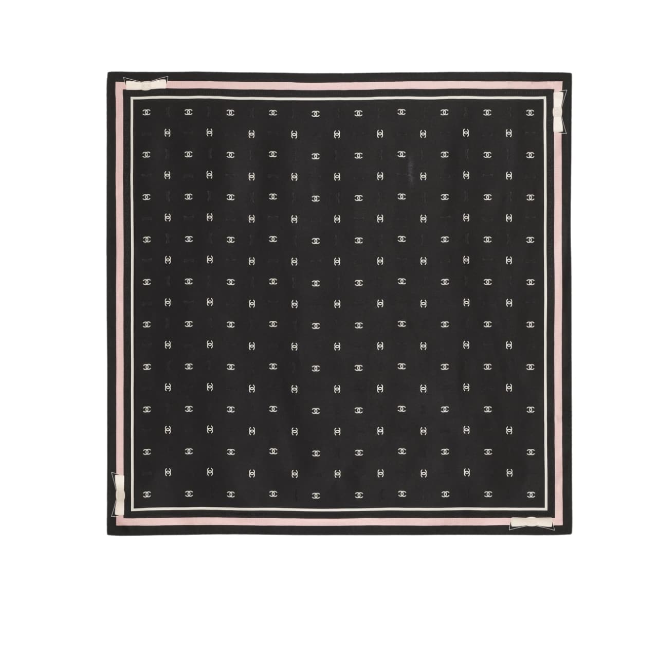 Chanel Square Scarf Jacquard Silk Twill Black, Ecru & Pink 90Cm AAA777 B19447 NAFFW