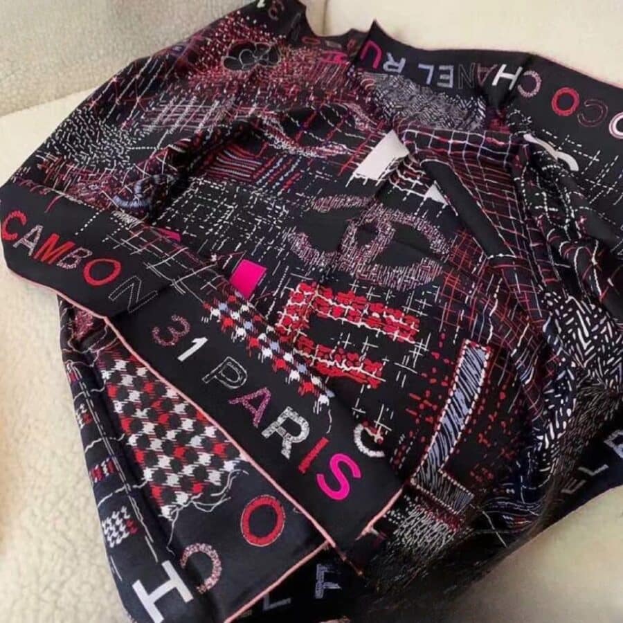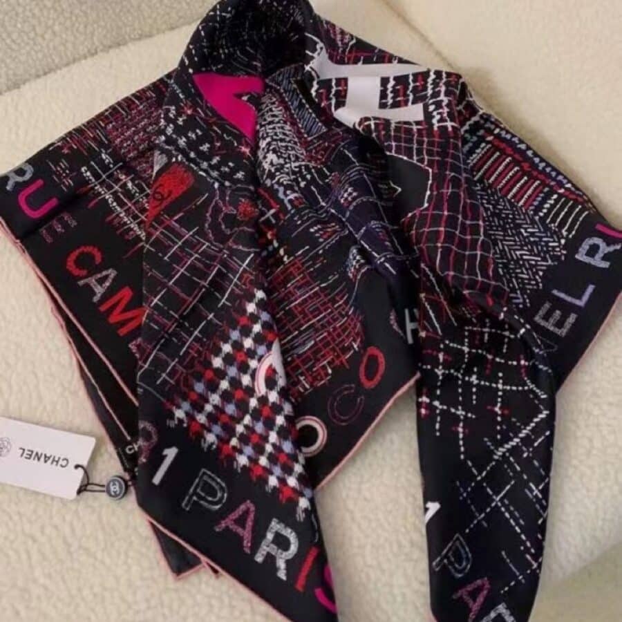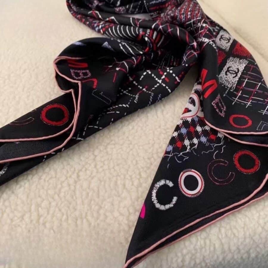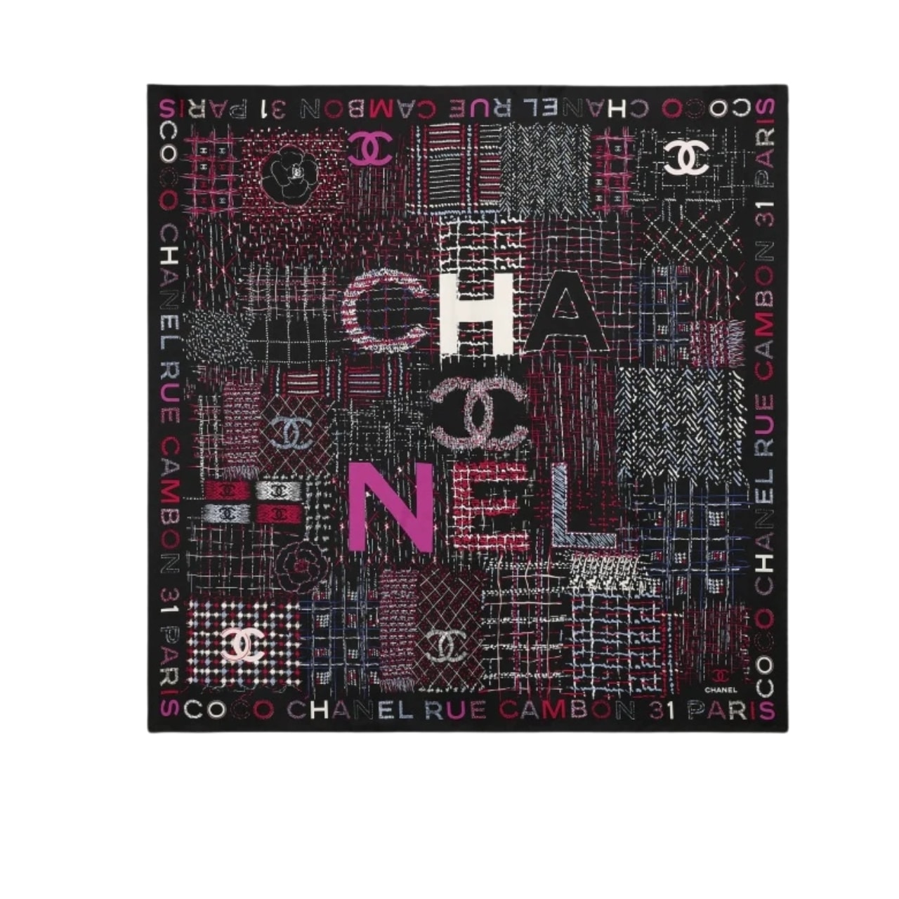 Chanel Square Scarf Silk Twill Multicolor In Black 90Cm AA8619 B09320 NK638