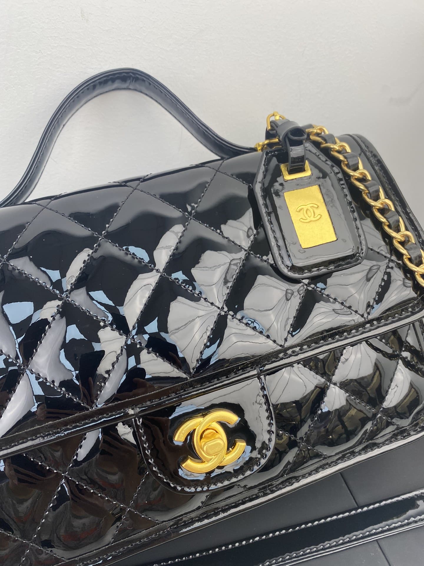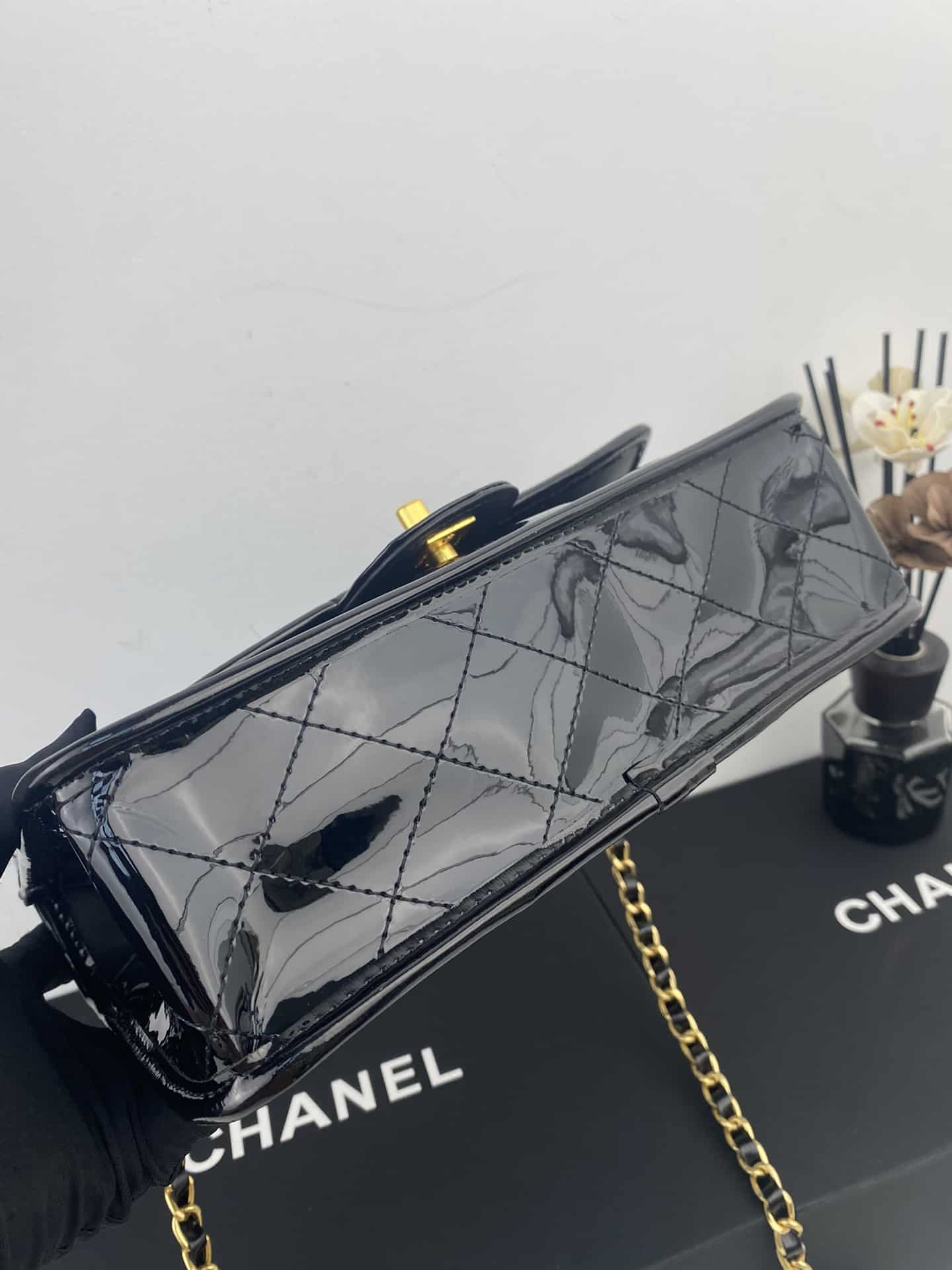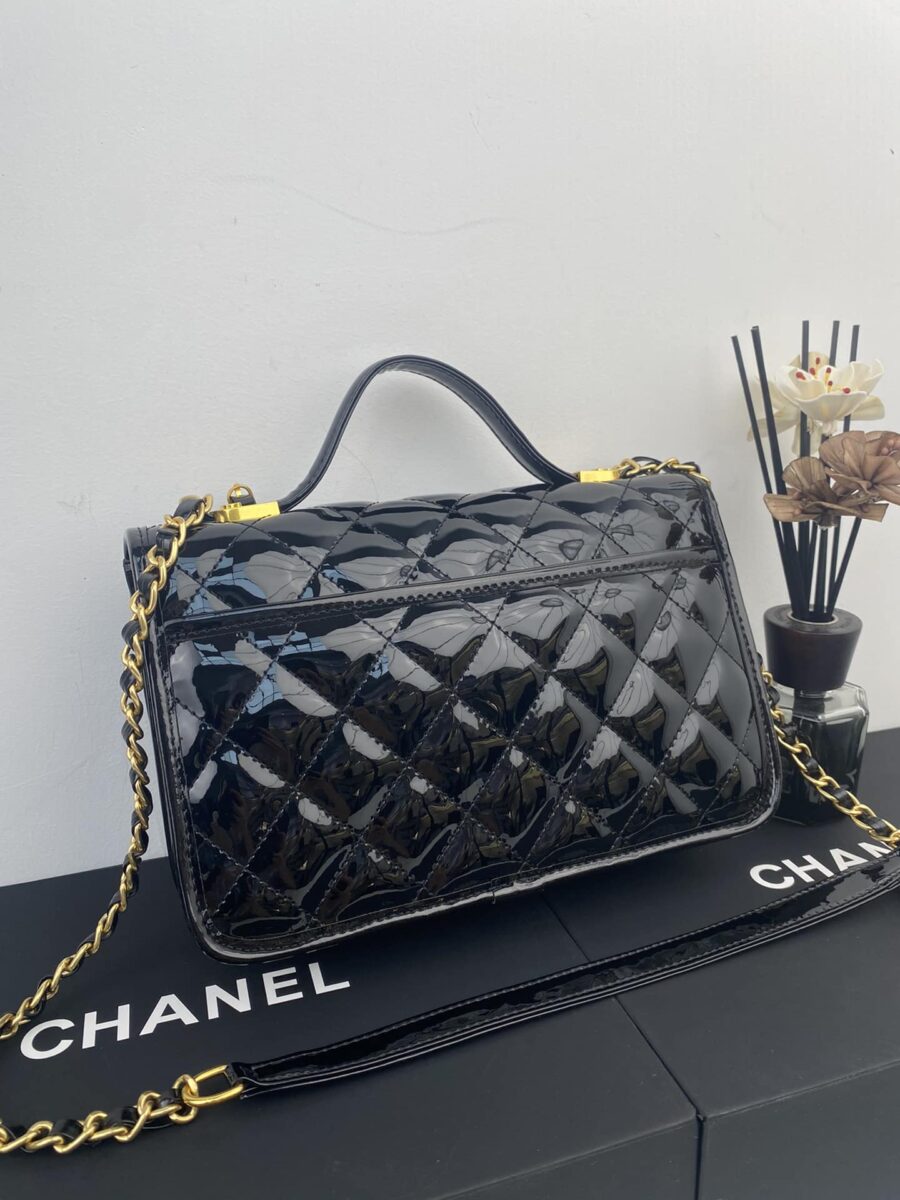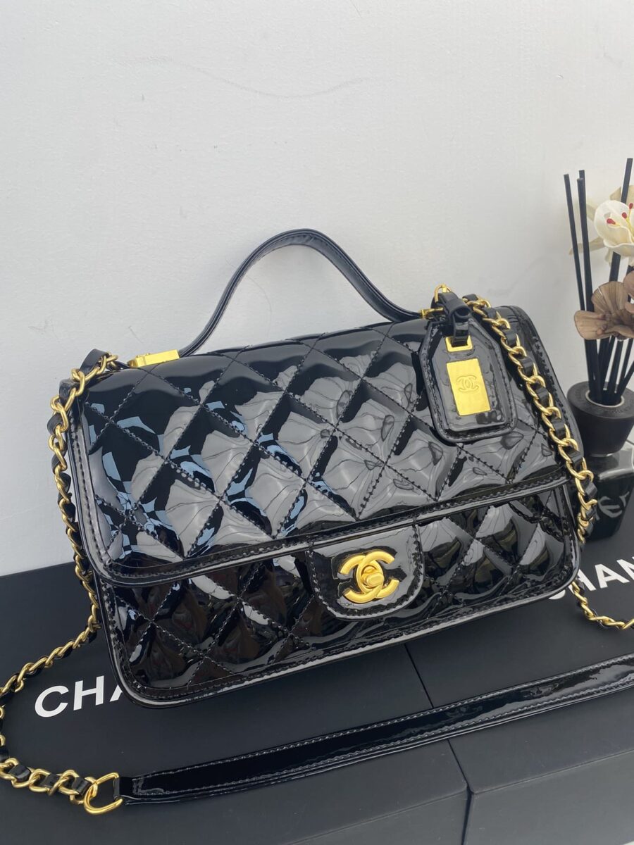 Chanel Top Handle Medium Flap Leather Shiny Black AS3653 B09576 94305 / 25cm / 9.8 inches