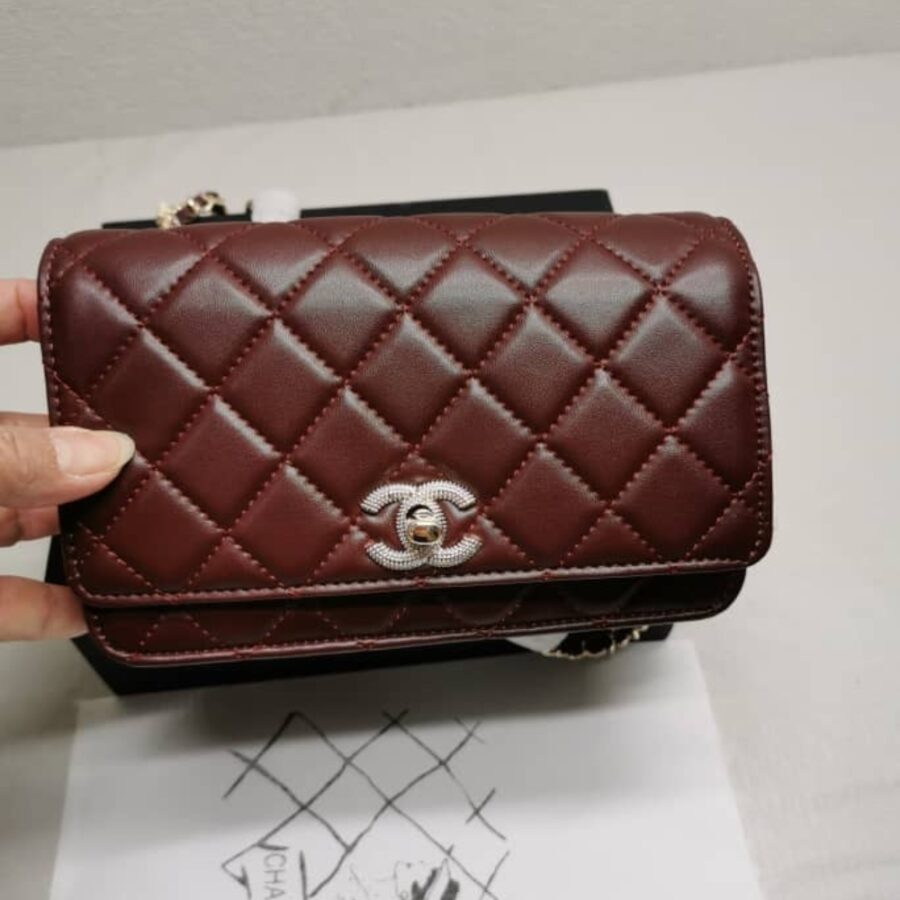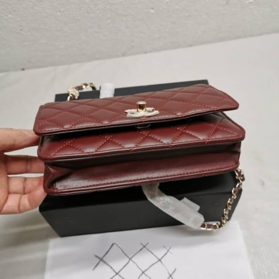 Chanel Wallet On Chain With Diamond Burgundy AP4299 B18216 NZV4/ 20 cm / 7.9 inches