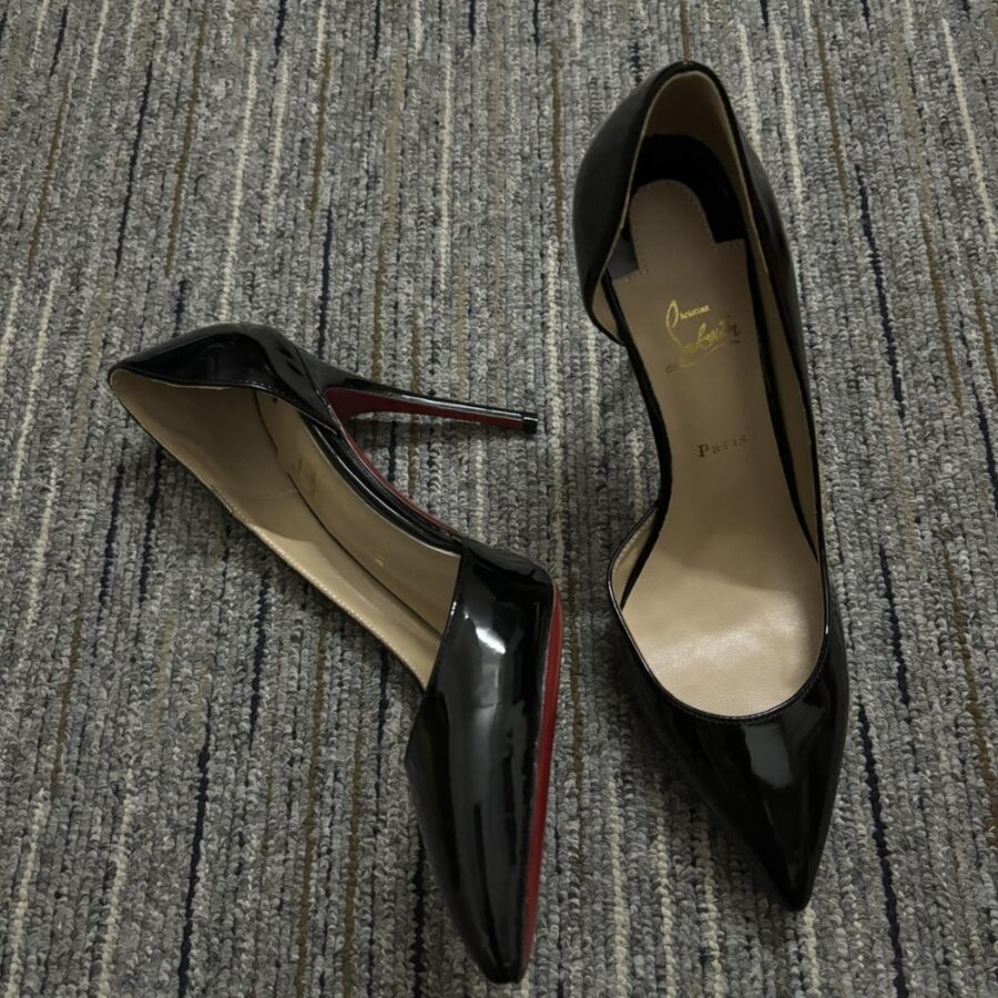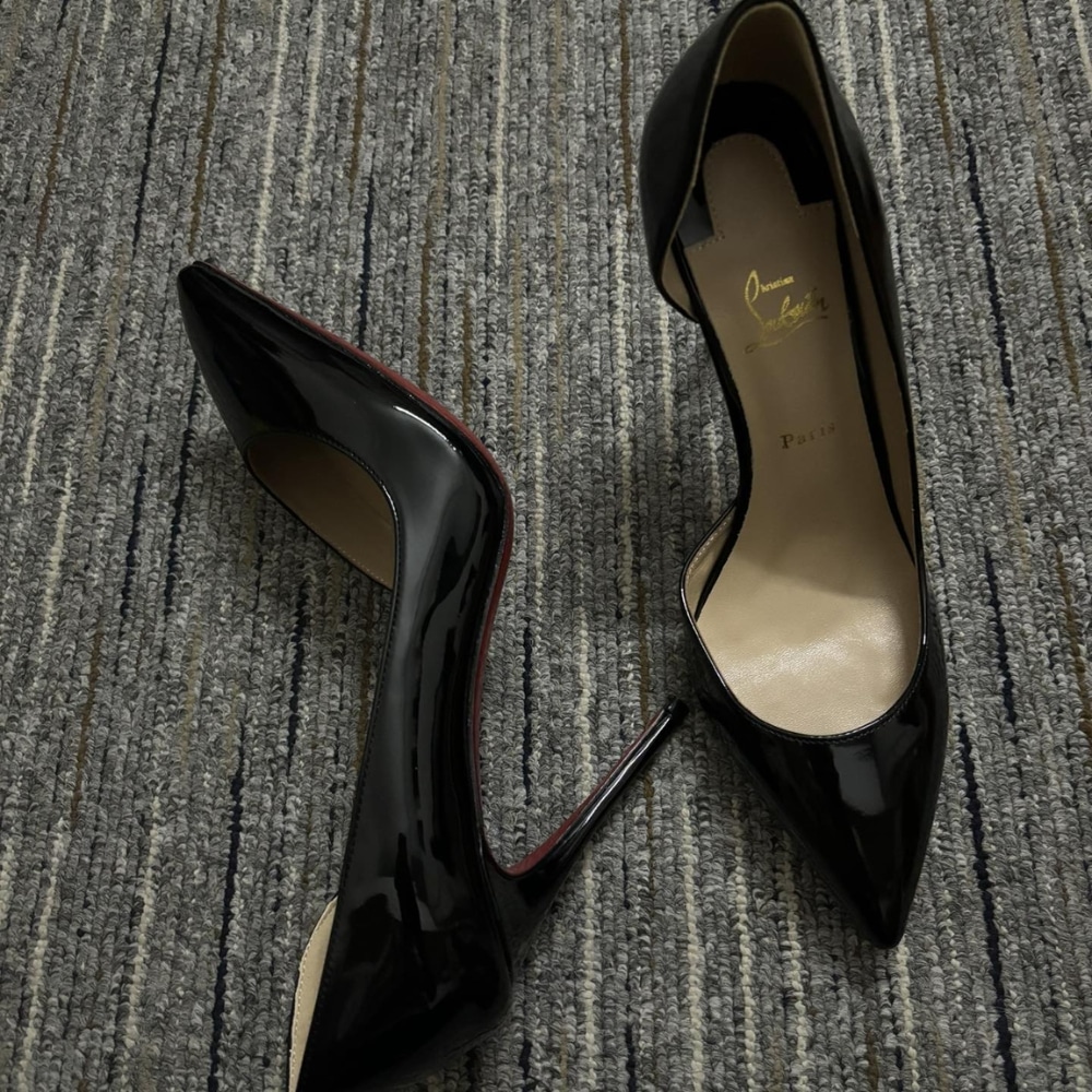 - Iconic red leather sole