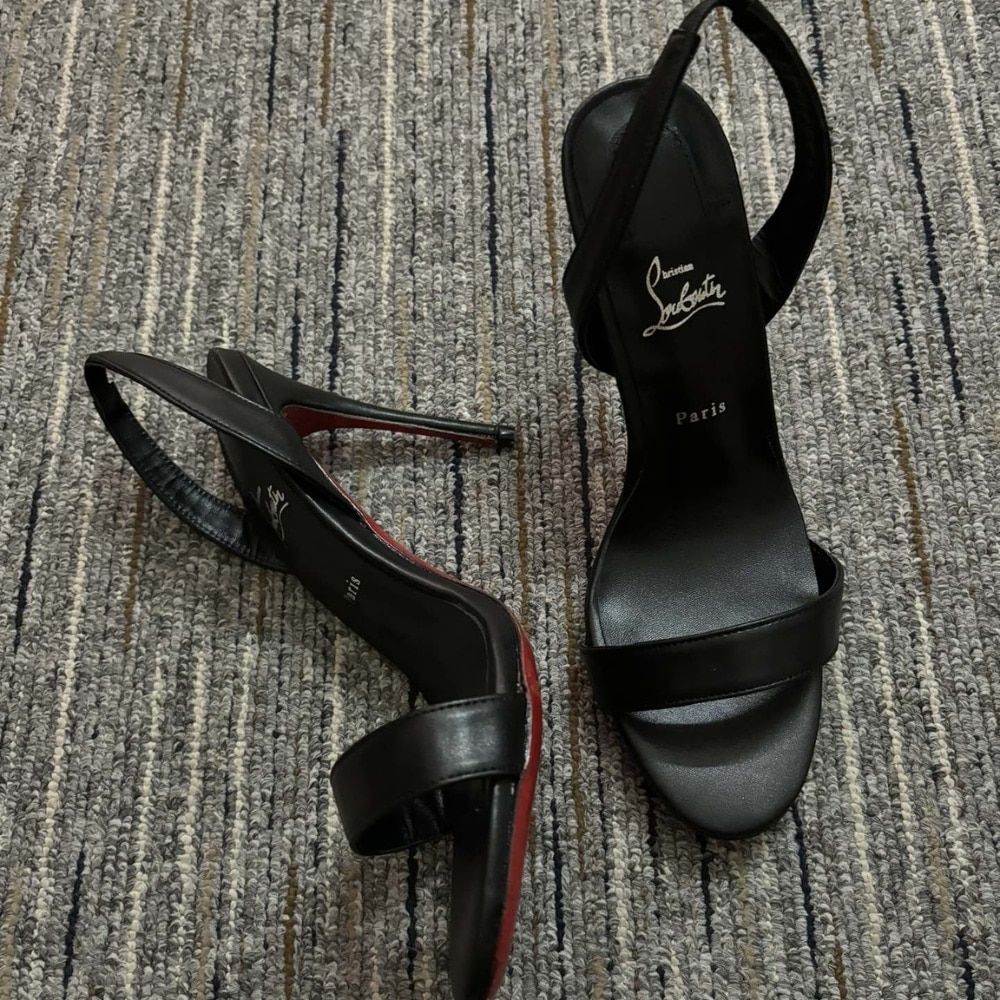 The O Condora sandal features a square open toe. This sophisticated Maison Christian Louboutin shoe is set on an 85 mm bevelled heel. Made entirely from black patent calf leather, it features a slender upper and strap that delicately dresses the top of the foot.