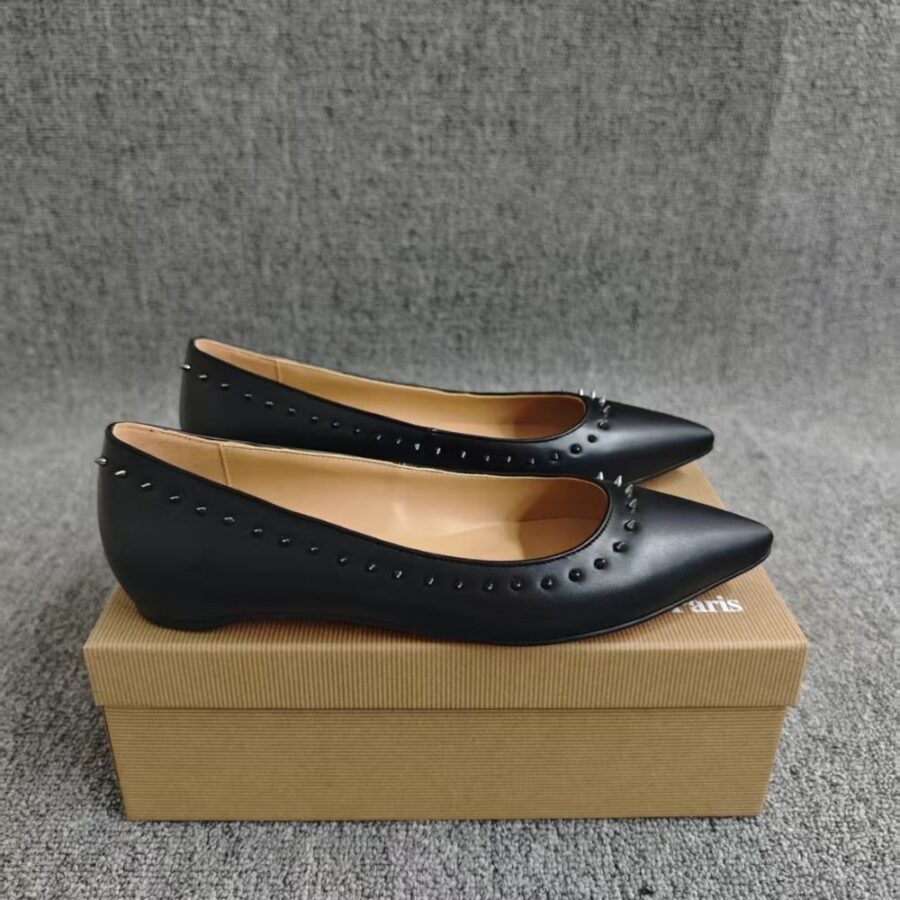 1:1 Replica Shoes – Christian Louboutin Studded Anjalina Flat Black 3151261B142