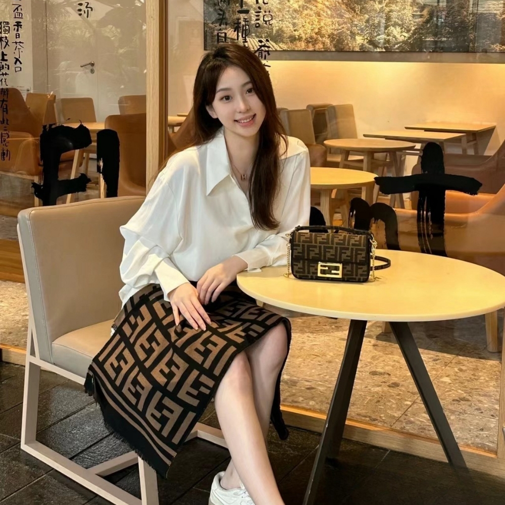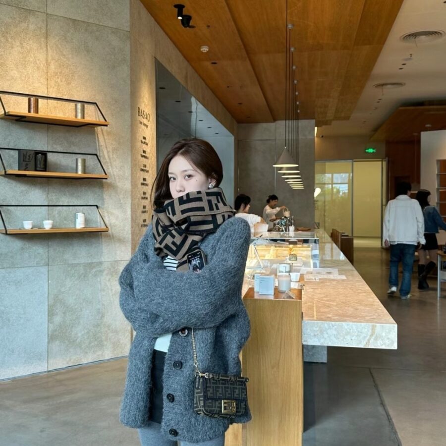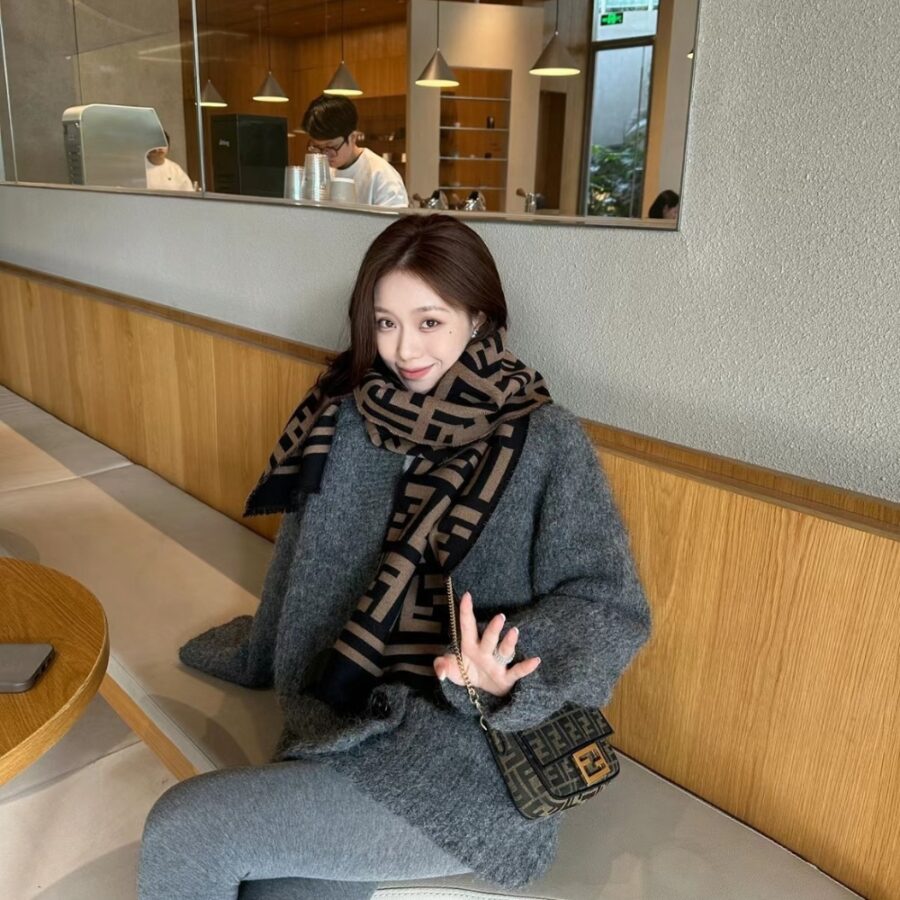FENDI FF BLACK WOOL AND SILK SCARF 180CM