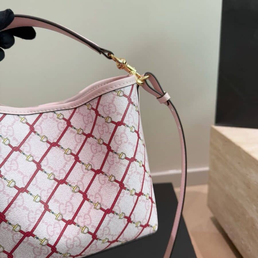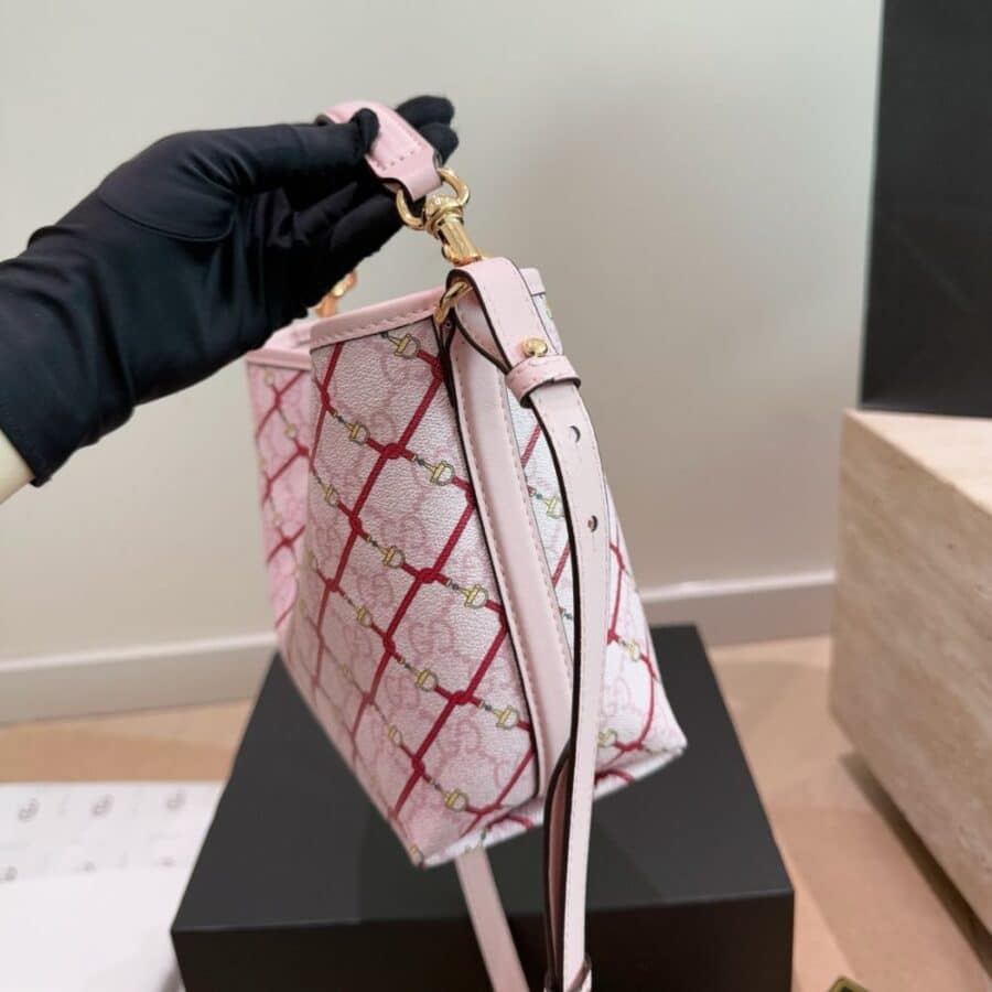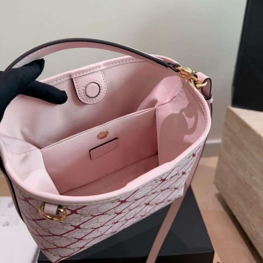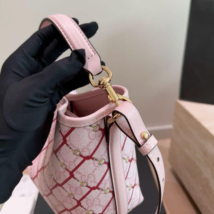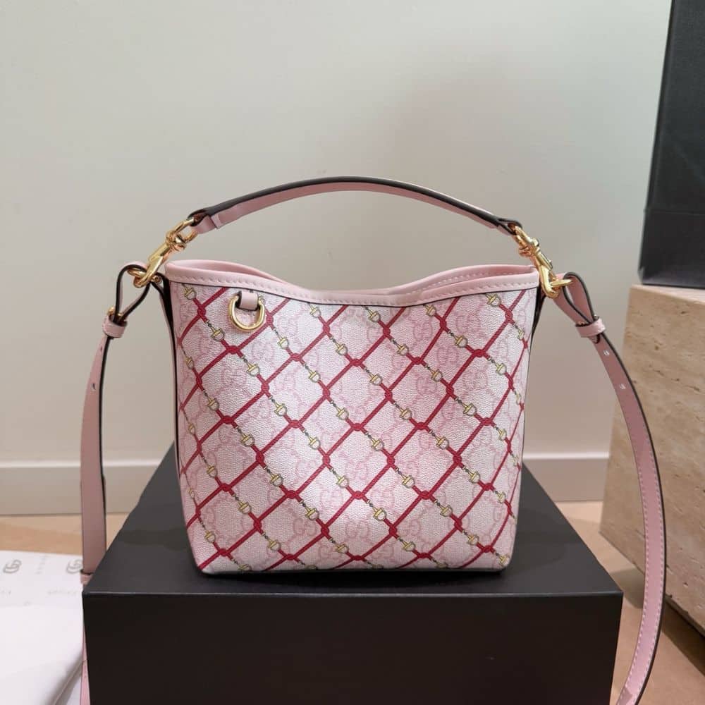 1:1 Replica Bag – Gucci GG Emblem Small Bucket Bag Pink And Red 20Cm 815118 FAFF1 8649