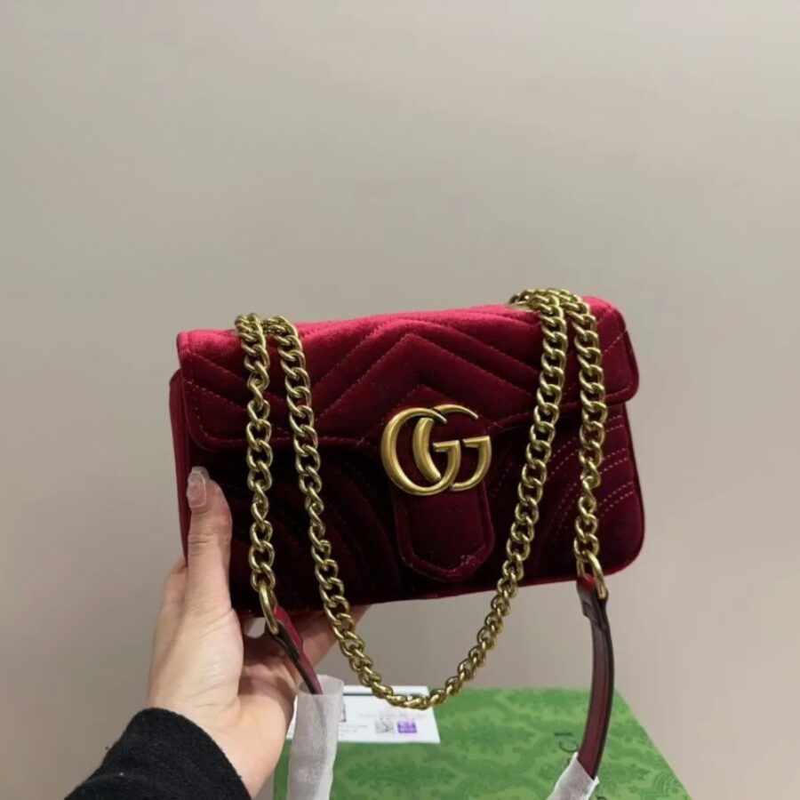 GUCCI GG MARMONT SHOULDER BAG VELVET LEATHER RED 20CM 443497K4D2T 6433
