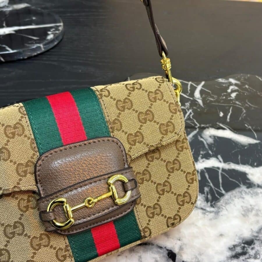 1:1 Replica Bag – Gucci Horsebit 1955 Small Shoulder Bag Sand And Brown GG Canvas 21cm 866762 FAFV9 9653
