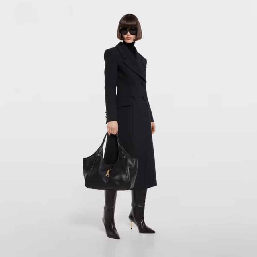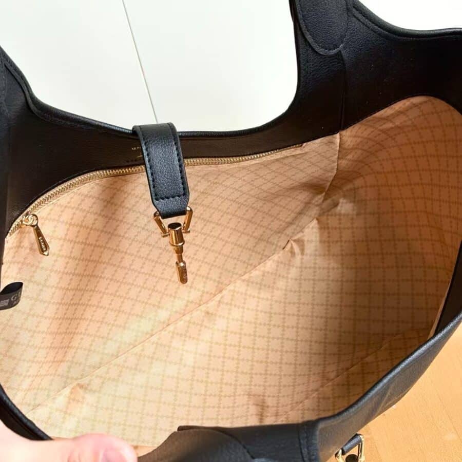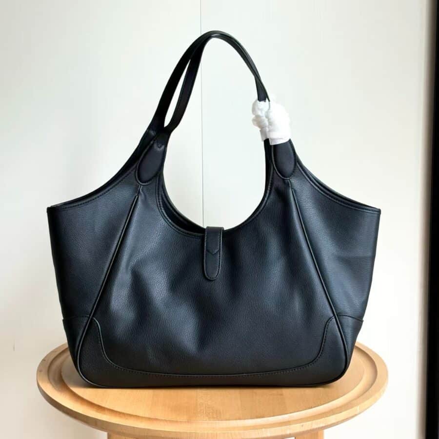 Gucci Mercato Medium Tote Bag / Black leather / 13.7 x 11 x 5.9 inches / Fits an iPad, iPhone, Airpods, and small items / Elegant style